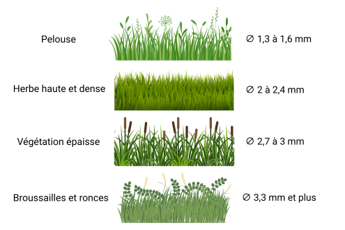 - 3 mm pour les herbes épaisses et friches légères.