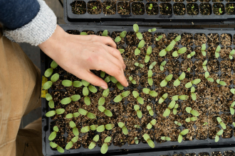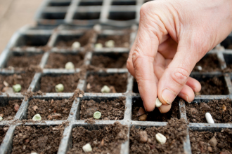 - Semer les graines de certaines plantes en surface comme les semences de basilic ou de laitue, puis recouvrir d'une fine couche de terreau à semis.
