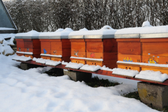 Durant l’hiver, il est conseillé de surveiller discrètement les ruches. L’entrée de la ruche doit être dégagée de tout obstacle ou de neige, pour permettre les vols de propreté que les abeilles effectuent durant les journées ensoleillées.