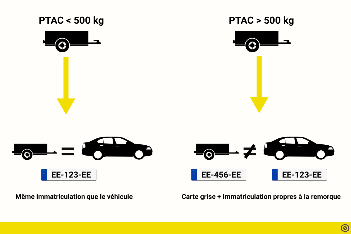 La règle est très simple, les remorques se divisent en deux grandes catégories en fonction de leur poids total autorisé en charge (PTAC) :