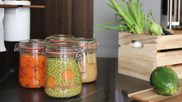 Les bocaux stérilisables Le Pratique, sont parfaits pour conserver légumes, viandes ou poissons. Dotés d’un couvercle coloré avec indicateur d’étanchéité et flip de contrôle, ils assurent une conservation optimale. Testés pour leur résistance thermique et marqués d’un numéro de lot, ils offrent qualité et traçabilité.