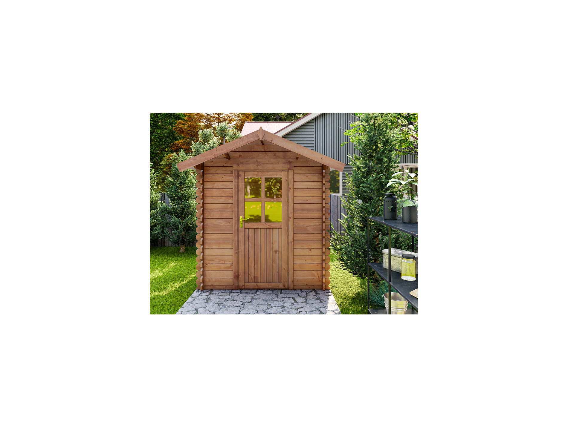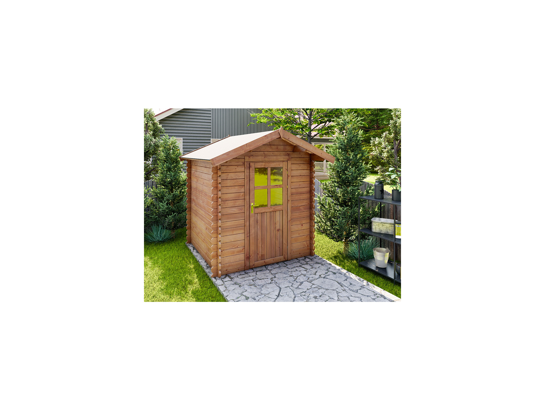Abri de jardin en bois offrant une surface utile de 3 m², idéal pour ranger la tondeuse, du matériel de bricolage et les outils de jardinage.