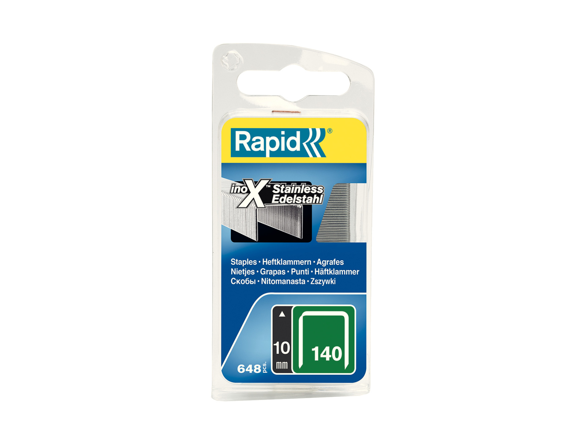 Agrafes acier inoxydable en fil plat n° 140/10 mm de Rapid. Agrafes de qualité en acier inoxydable, sont faites d'un fil plat plus large et donc parfaitement adapté pour fixer les matériaux tels que les isolants minces, les bâches, les cartons ou les moquettes. Les pointes de ces agrafes sont affûtées pour une bonne pénétration dans les matériaux.