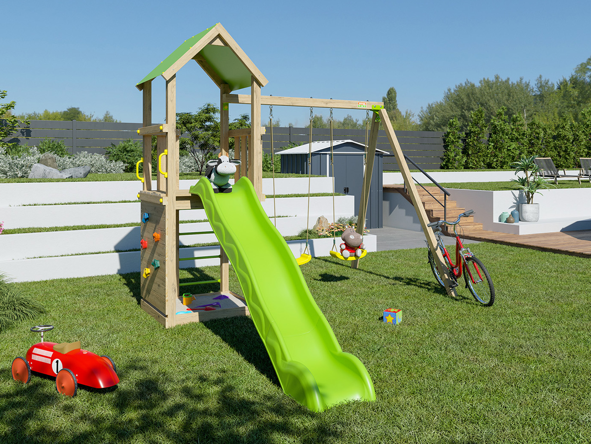 | Accessoires | 2 balançoires + 1 mur de grimpe |