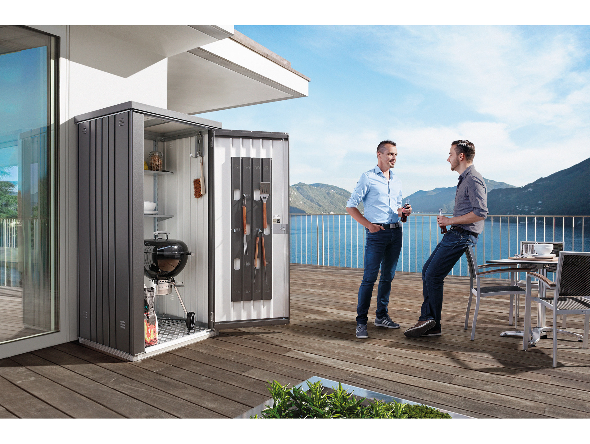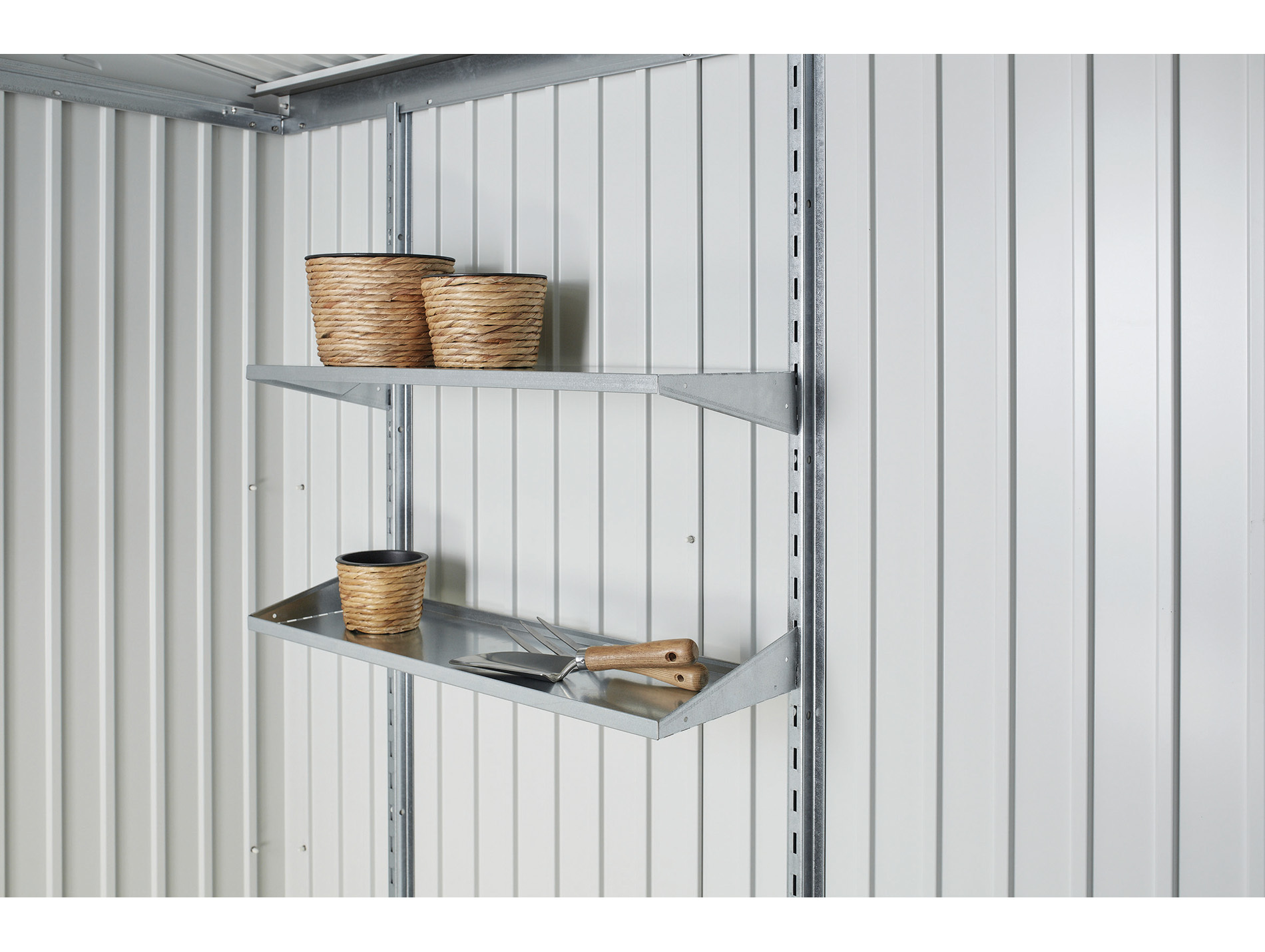Armoire métallique à outils T90 gris foncé, idéal pour protéger les outils de jardin et de bricolage ainsi que les jouets des intempéries et du vol. Parois en acier double épaisseur. Équipée d'étagères et de systèmes de rangement. Serrure cylindrique à double verrouillage. Ne nécessite aucun entretien. Cadre de sol et plaque de fond en options.