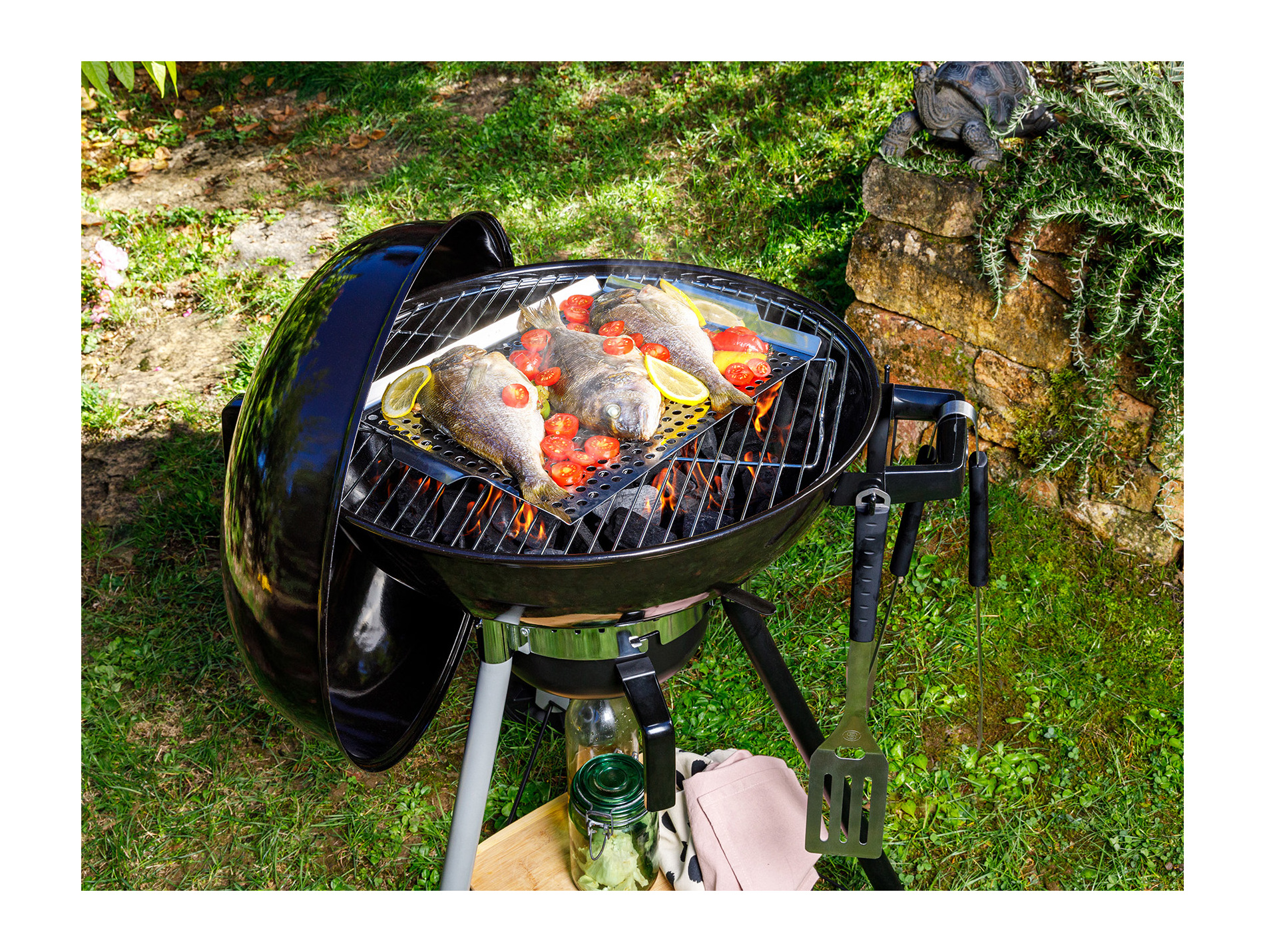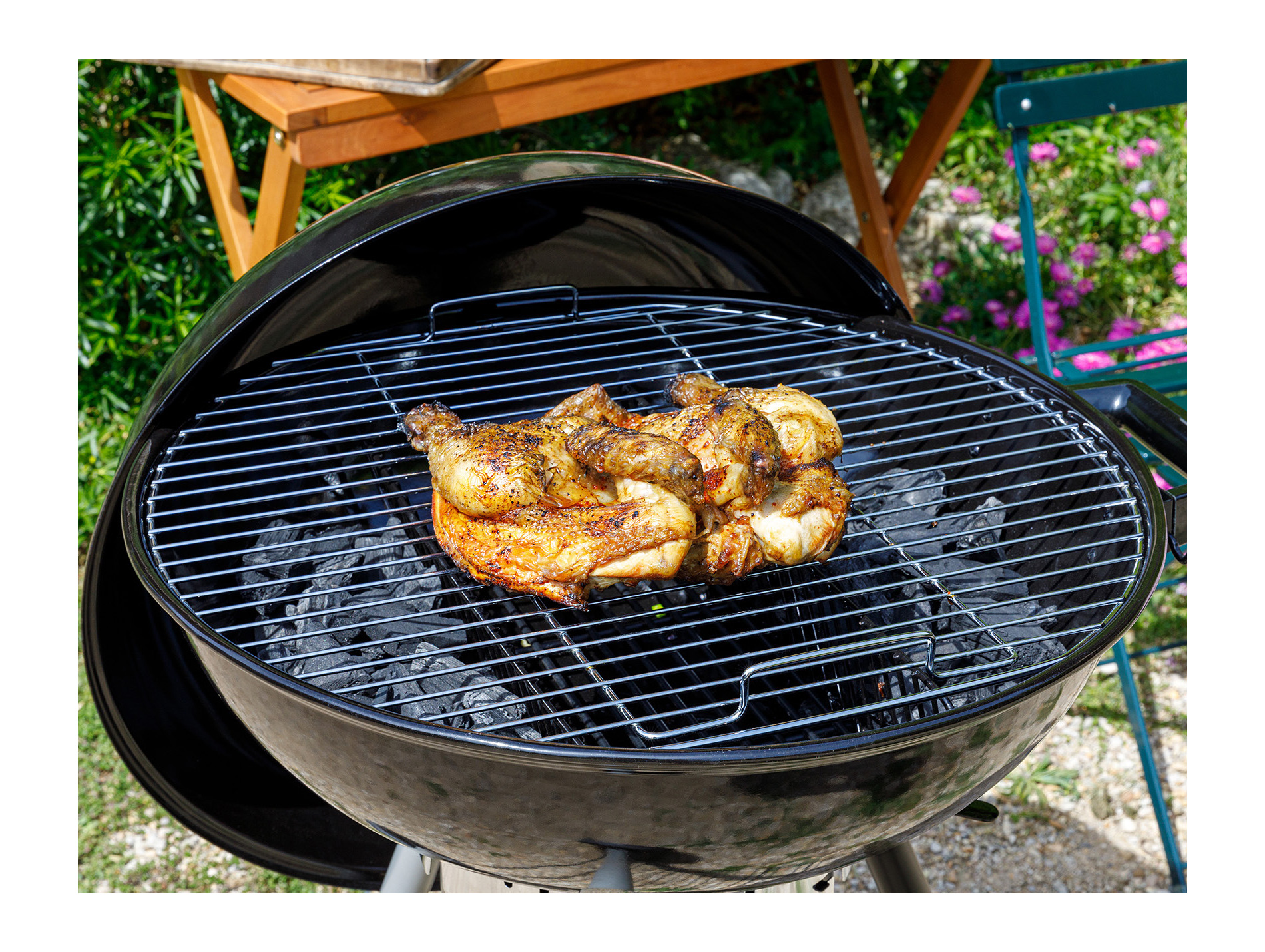 Découvrez le Barbecue au charbon TEXAS, l'allié parfait pour vos moments de convivialité en extérieur. Doté d'une cuve en acier émaillé de 57 cm de diamètre, ce barbecue est monté sur un chariot pratique avec une plateforme de rangement, offrant ainsi une grande stabilité et un espace supplémentaire pour vos accessoires. Le couvercle de cuisson en acier émaillé vous permet de maîtriser parfaitement la cuisson, tandis que la grille de cuisson en acier chromé de 55 cm de diamètre assure une répartition uniforme de la chaleur. Profitez également des deux grilles supplémentaires pour une cuisson indirecte, idéale pour des cuissons lentes et savoureuses. Le cendrier récupérateur de cendres facilite le nettoyage, rendant l'entretien de votre barbecue simple et rapide. Avec un montage facile, le Barbecue TEXAS est prêt à l'emploi en un rien de temps, pour des moments gourmands en famille ou entre amis.