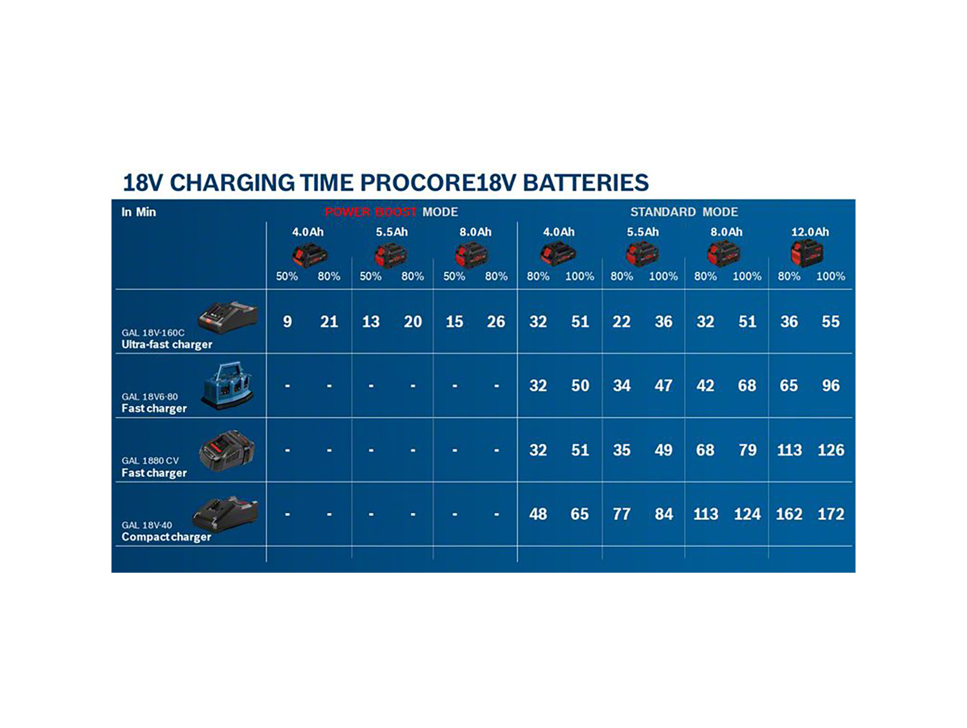 La batterie BOSCH ProCore 18 v 4 Ah lithium-ion offre une autonomie optimisée avec un temps d?utilisation prolongé de 87% par rapport aux batteries 18 v, 4 et 6 Ah. Grâce à sa technologie avancée, elle bénéficie d?une durée de vie améliorée de +135%. Équipée de 5 indicateurs LED pour un suivi précis du niveau de charge, elle est entièrement compatible avec tous les outils Blue Li-ion 18 v Bosch. Son format compact et son poids de 515g assurent une maniabilité optimale.