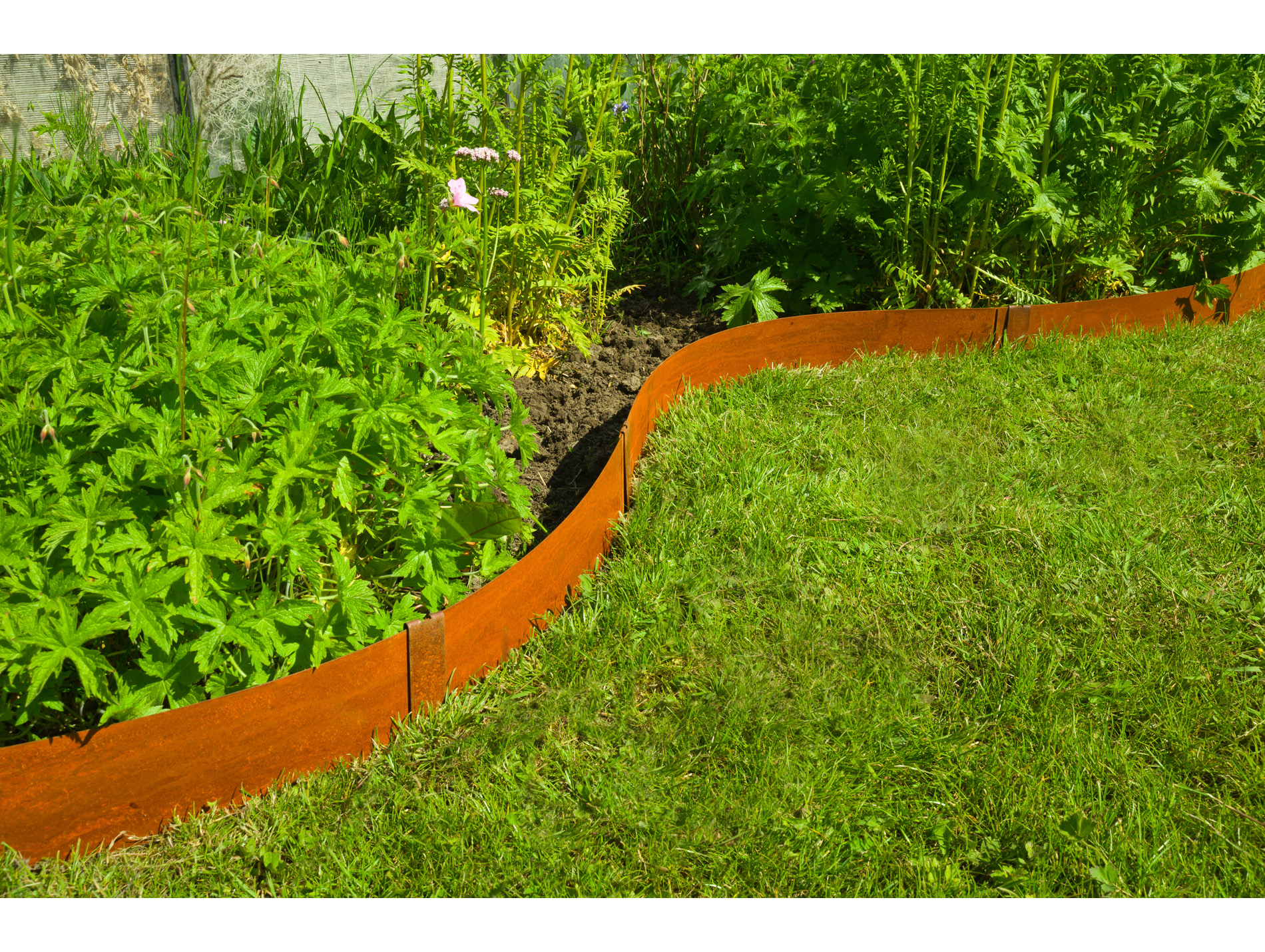 Bordure de jardin raboutable en acier galvanisé, d'une épaisseur de 1,4 mm et d'une longueur totale de 2,64 m. Inclus 4 ancres, 25 x 3,5 cm. 3 lattes de dimensions : H 10,2 x 91,4 cm