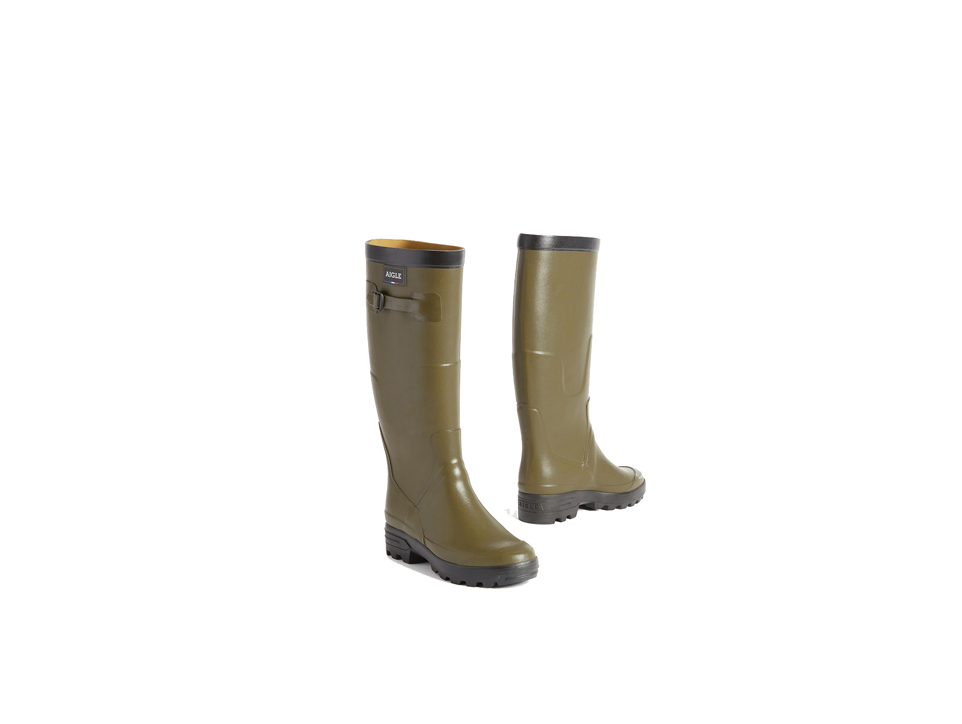 Bottes pour homme AIGLE Benyl, idéales pour la chasse et conseillées pour une activité professionnelle et la marche active. Légères et souples, elles s'adaptent aux mollets larges avec sa boucle de réglage. Dotées d'une semelle extérieure en caoutchouc, elles offrent une accroche et un amorti incomparables. Elles sont aussi confortables avec une semelle en mousse amortissante, doublée Softex®. Botte en caoutchouc confectionnée à la main en France. Tailles du 39 au 48. Coloris : kaki.