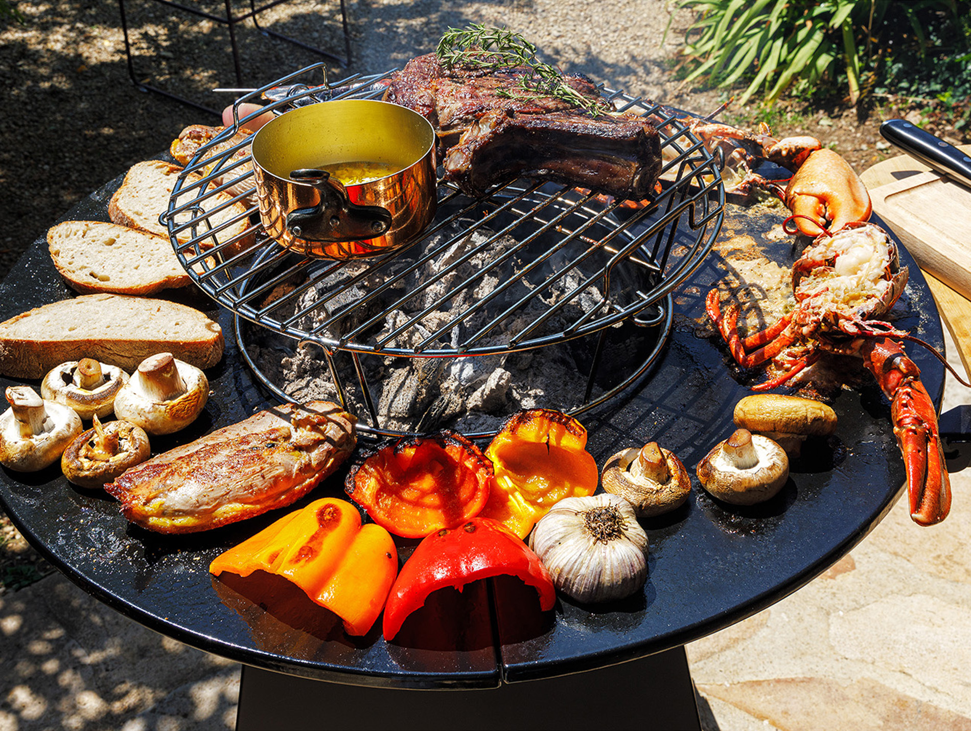 Le braséro de cuisson SOMAGIC est conçu pour cuisiner au bois ou au charbon en extérieur avec confort et sécurité. Sa cuve en acier laqué de 70 cm de diamètre offre une grande surface pour accueillir vos braises et garantir une cuisson homogène des aliments.