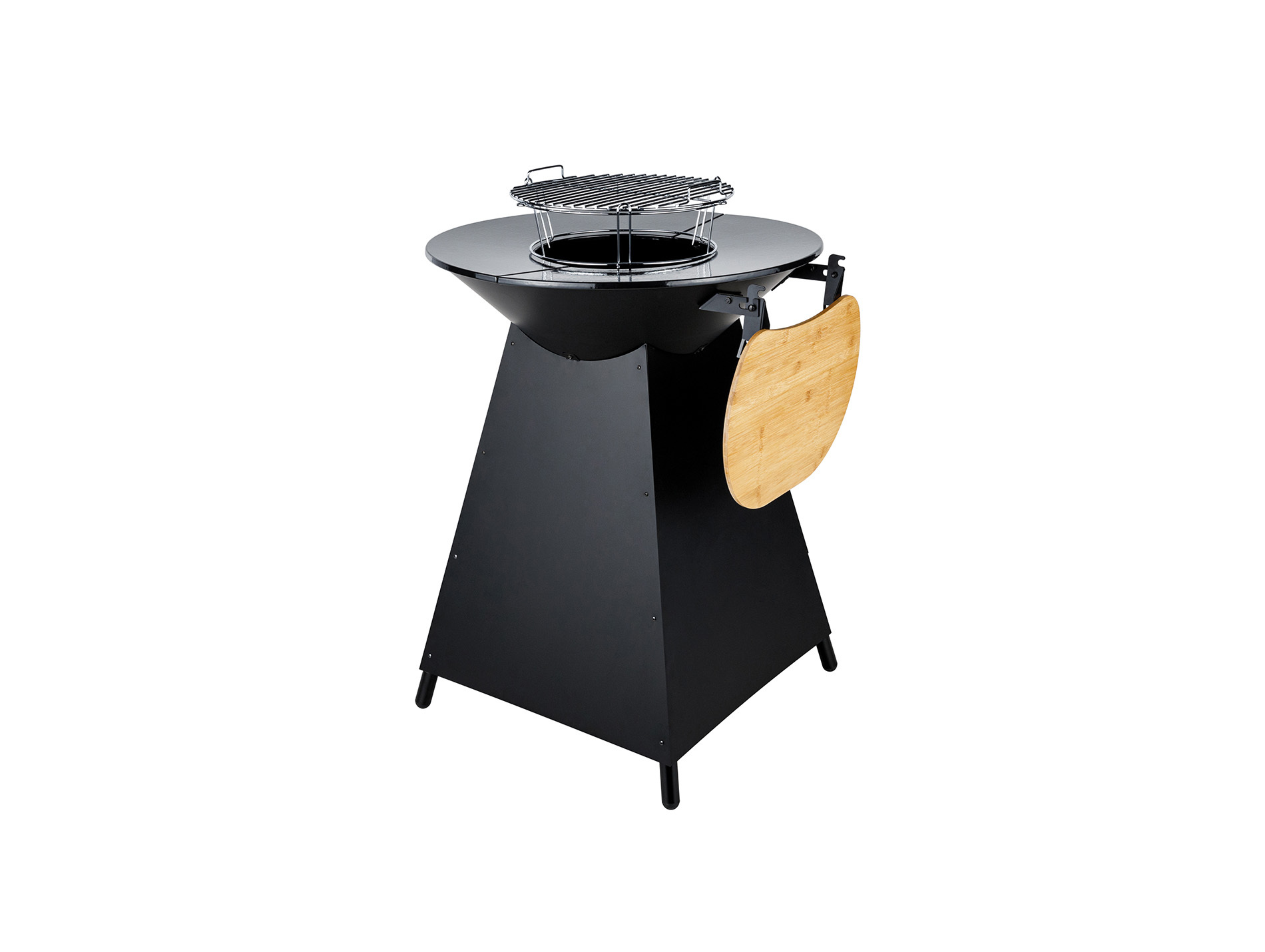 Pour plus de praticité, ce braséro est équipé d'une tablette en bambou rabattable, idéale pour poser vos ustensiles ou préparer vos aliments à proximité. Le socle en acier robuste assure la stabilité et la durabilité du braséro, même lors d'un usage fréquent en extérieur.