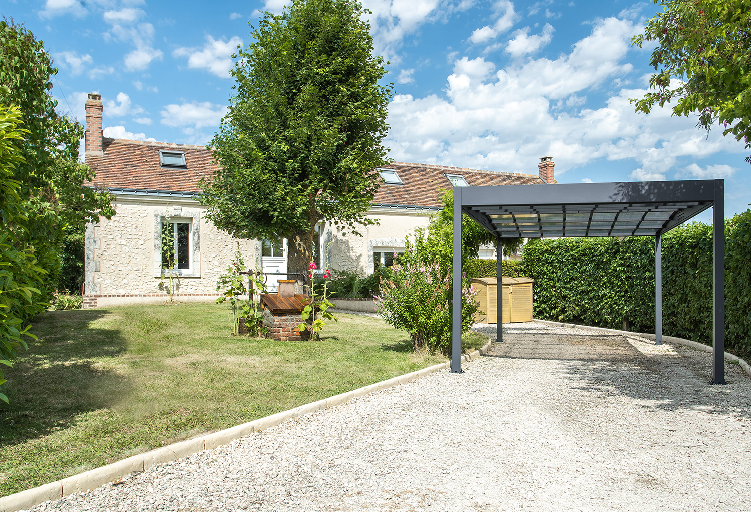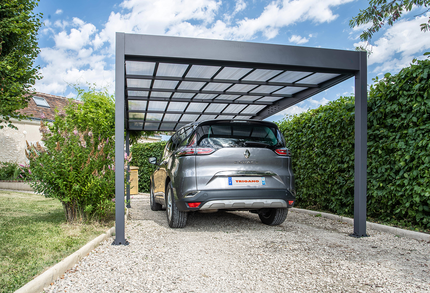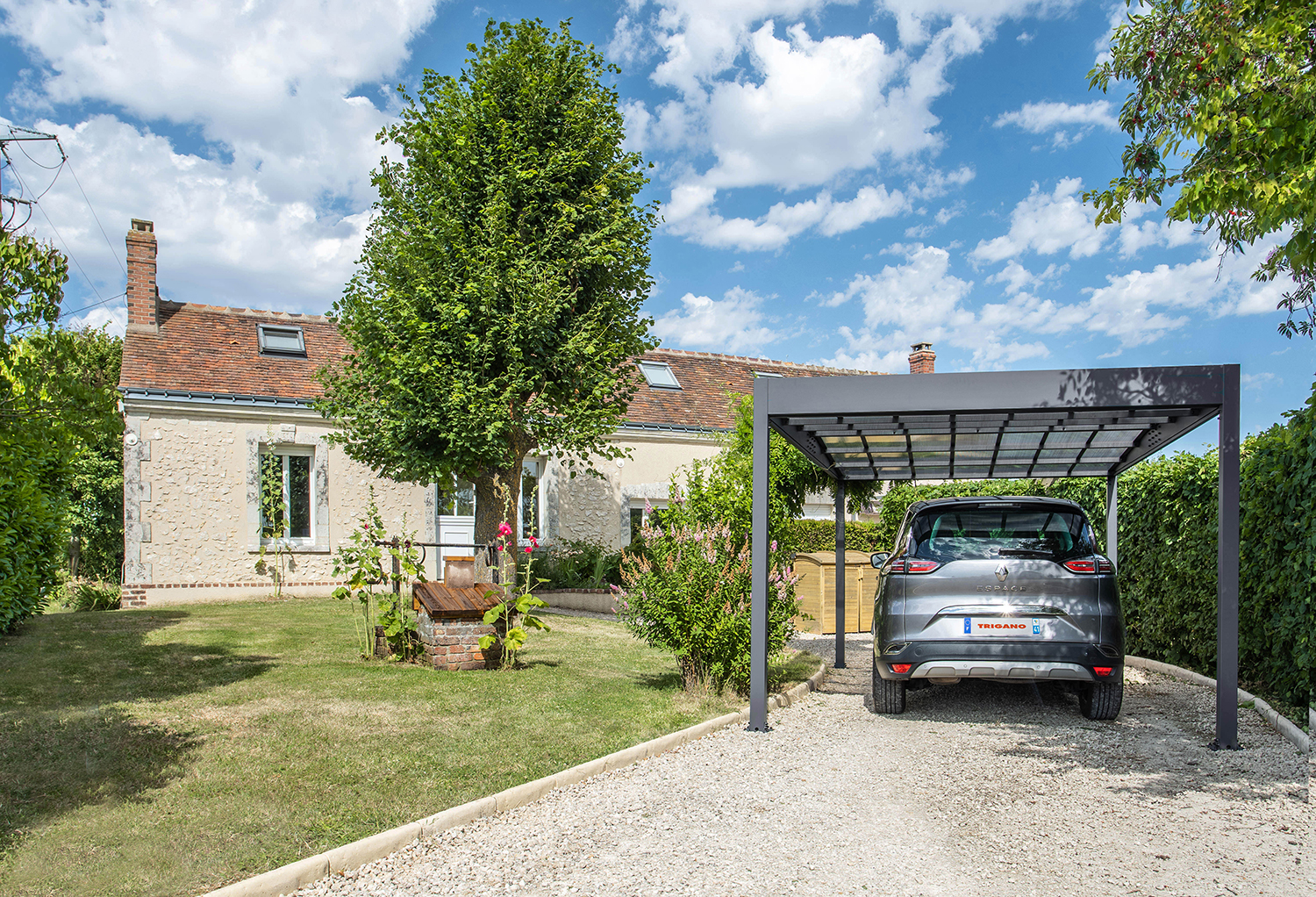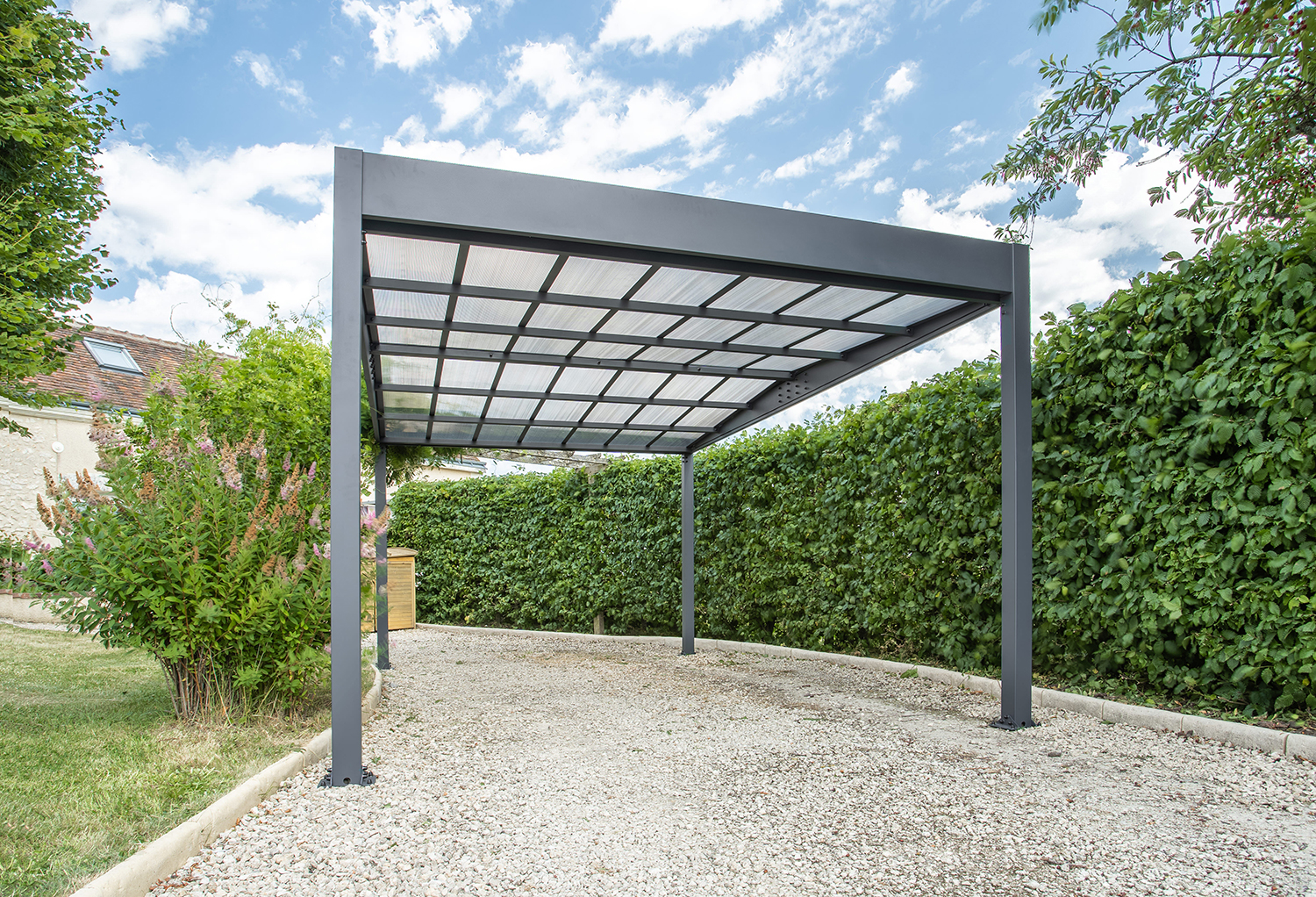 Carport en métal Libeccio. Conçu pour durer et ne nécessitant aucun entretien, le carport alu Libeccio permettra d'abriter votre véhicule des intempéries. Avec ses lignes contemporaines et son design épuré, il s'intègrera parfaitement dans votre cour ou allée sans dénoter l'esthétique de votre espace. Esthétique, robuste et élégant, il se démarque par une résistance très élevée et une structure solide.