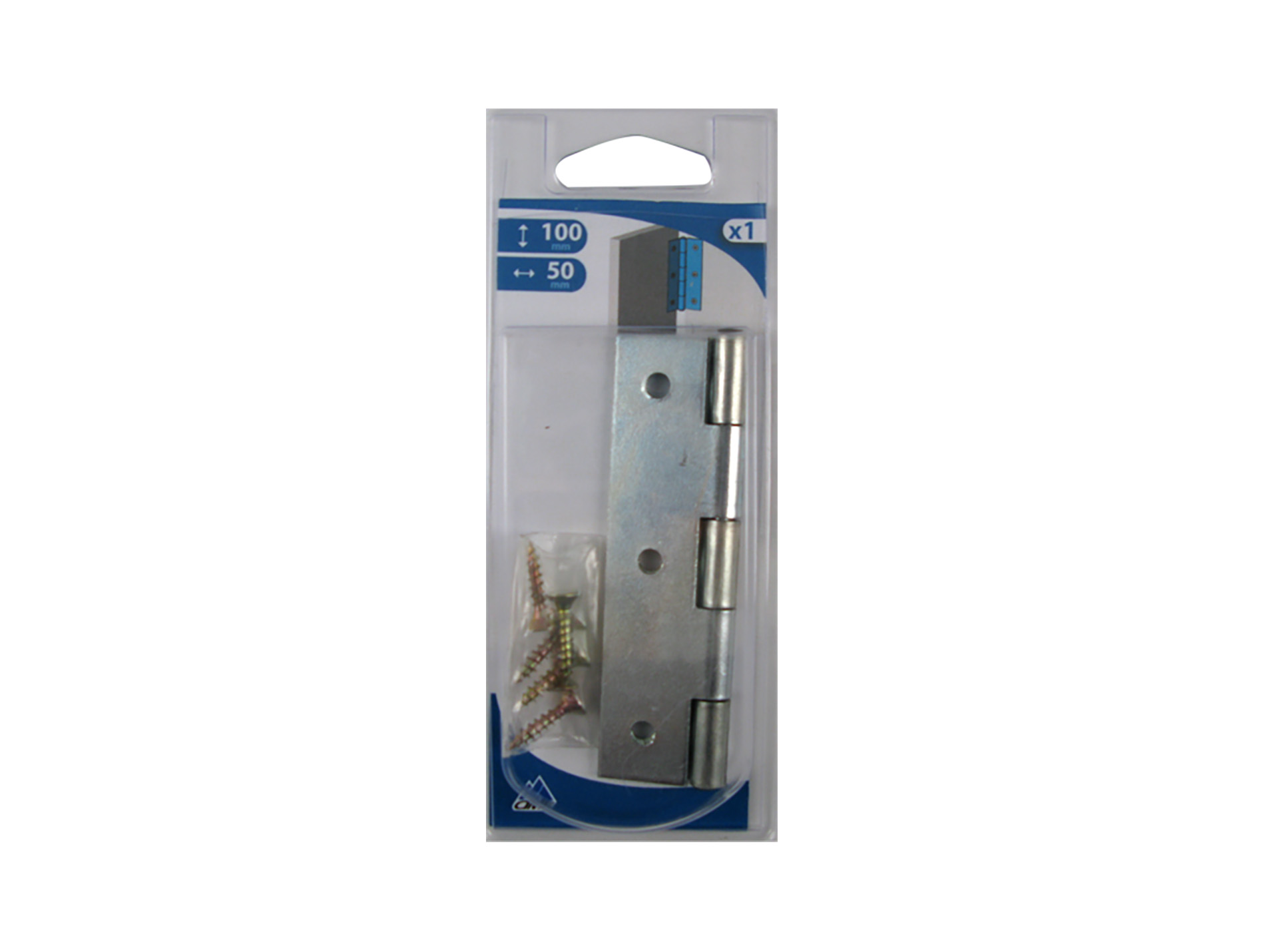 Charnière rectangulaire en acier zingué CIME. Hauteur : 100 mm. Largeur : 50 mm. Feuille simple.