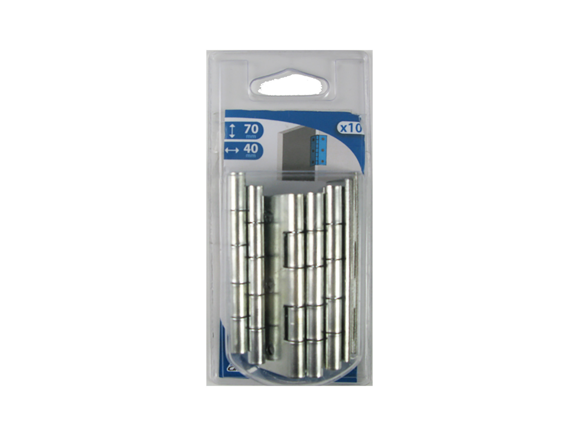 Charnière rectangulaire en acier zingué CIME. Hauteur : 70 mm. Largeur : 40 mm. Feuille simple.