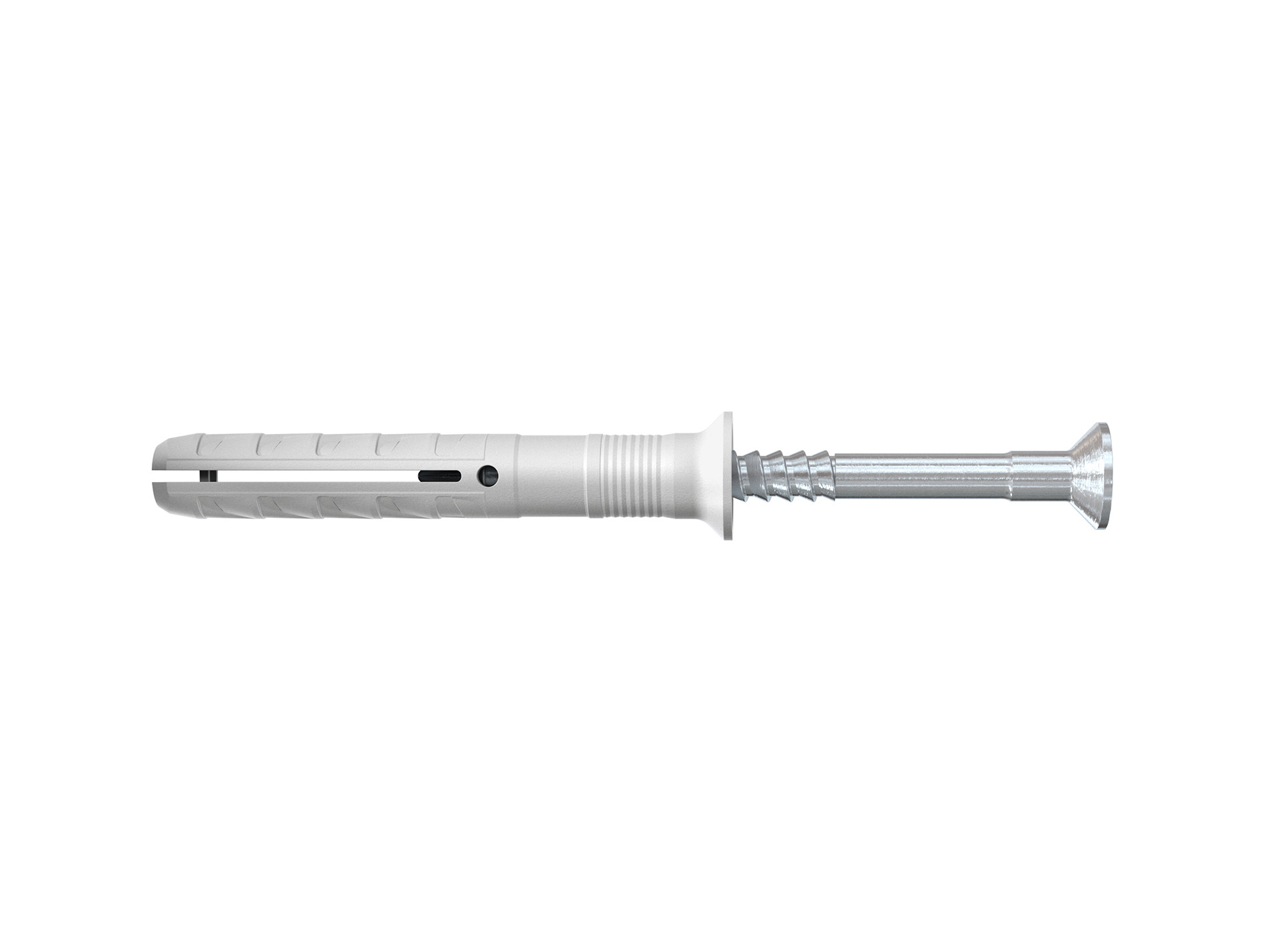 Fabriquée en nylon de haute qualité, la cheville à frapper N-S est accompagnée d'un clou en acier électrozingué, tous deux prémontés pour une installation rapide. Lors de l'enfoncement du clou, la cheville s'expanse et s'ancre solidement dans le matériau de construction. Ce modèle est particulièrement adapté pour le montage traversant et la fixation de structures en bois dans des matériaux de construction variés à l'intérieur.