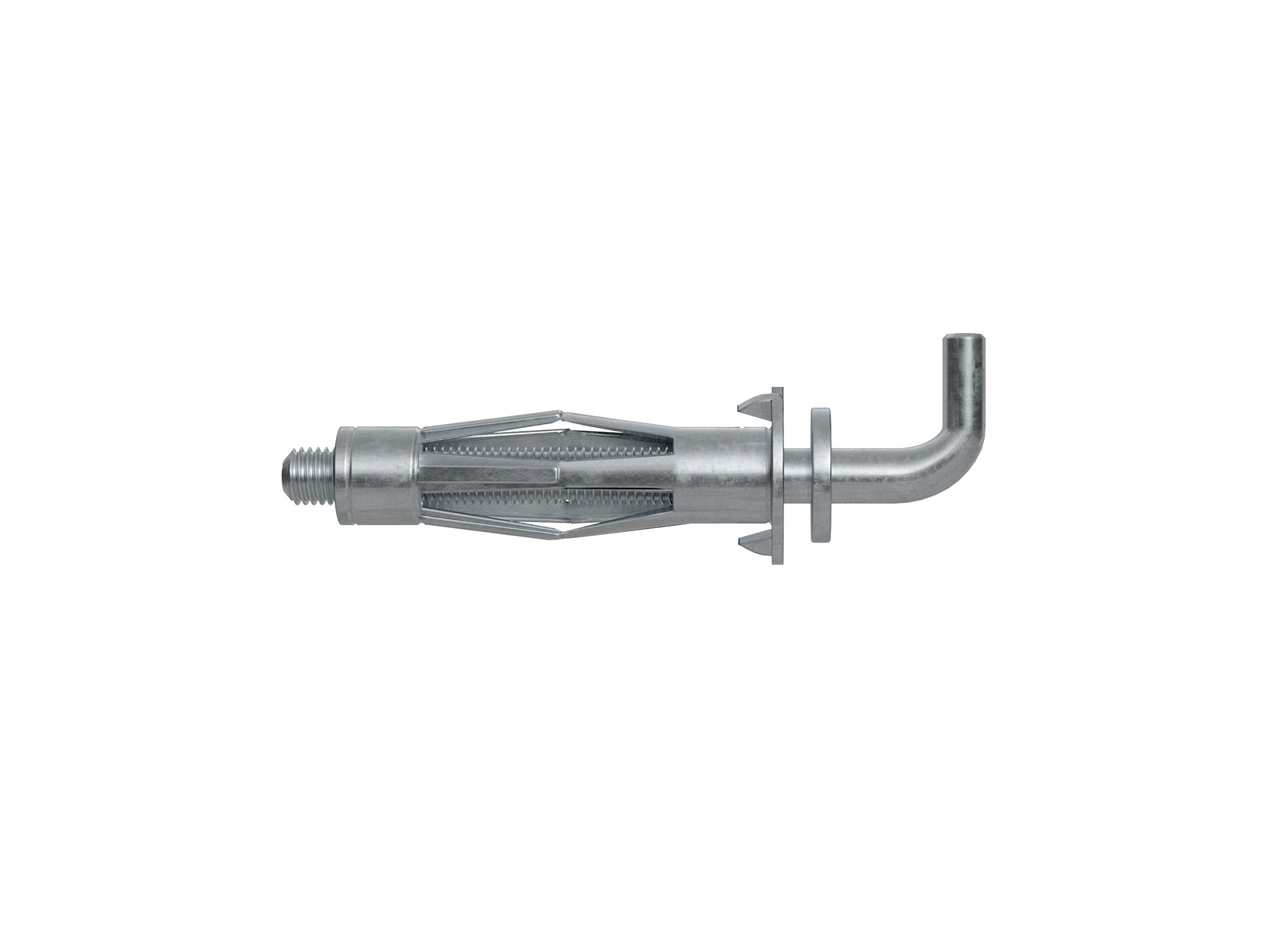 Chevilles métalliques à expansion avec crochets HM 4 x 32 H. Sachet de 4 pièces. La cheville métallique pour corps creux HM-H est une cheville polyvalente avec crochet droit pour tous les matériaux de construction en panneaux. Des crans sur la cheville maintiennent la cheville dans la plaque pour éviter une possible rotation. Permet de tenir des objets lourds dans les matériaux de construction en plaque par la grande surface de contact des bras écarteurs. La cheville métallique pour corps creux HM convient pour la fixation de lampes, cadres et étagères légères à l'intérieur, et. A utiliser avec la pince FISCHER HM-Z 1.