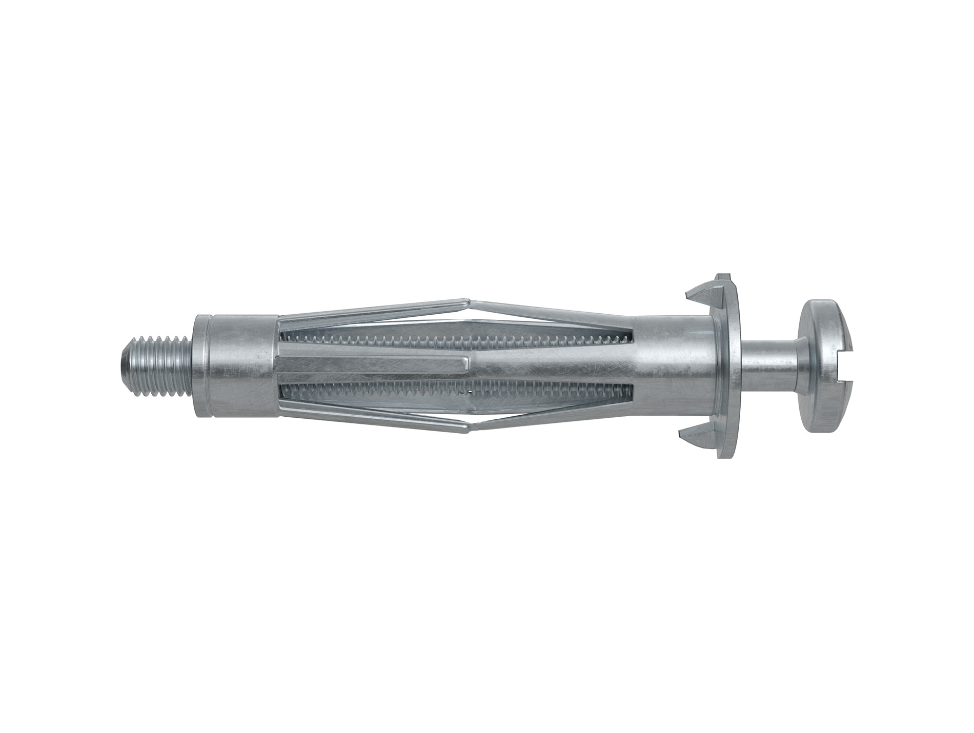 Le taraudage métrique permet de multiples dévissages et revissages de la pièce à fixer, ce qui offre une flexibilité optimale. Les branches d'expansion de la HM s'appuient sur une surface étendue ce qui permet une capacité de charge élevée. Les ergots s'encastrent dans le panneau, évitent la rotation de la cheville et assurent ainsi un montage sûr.