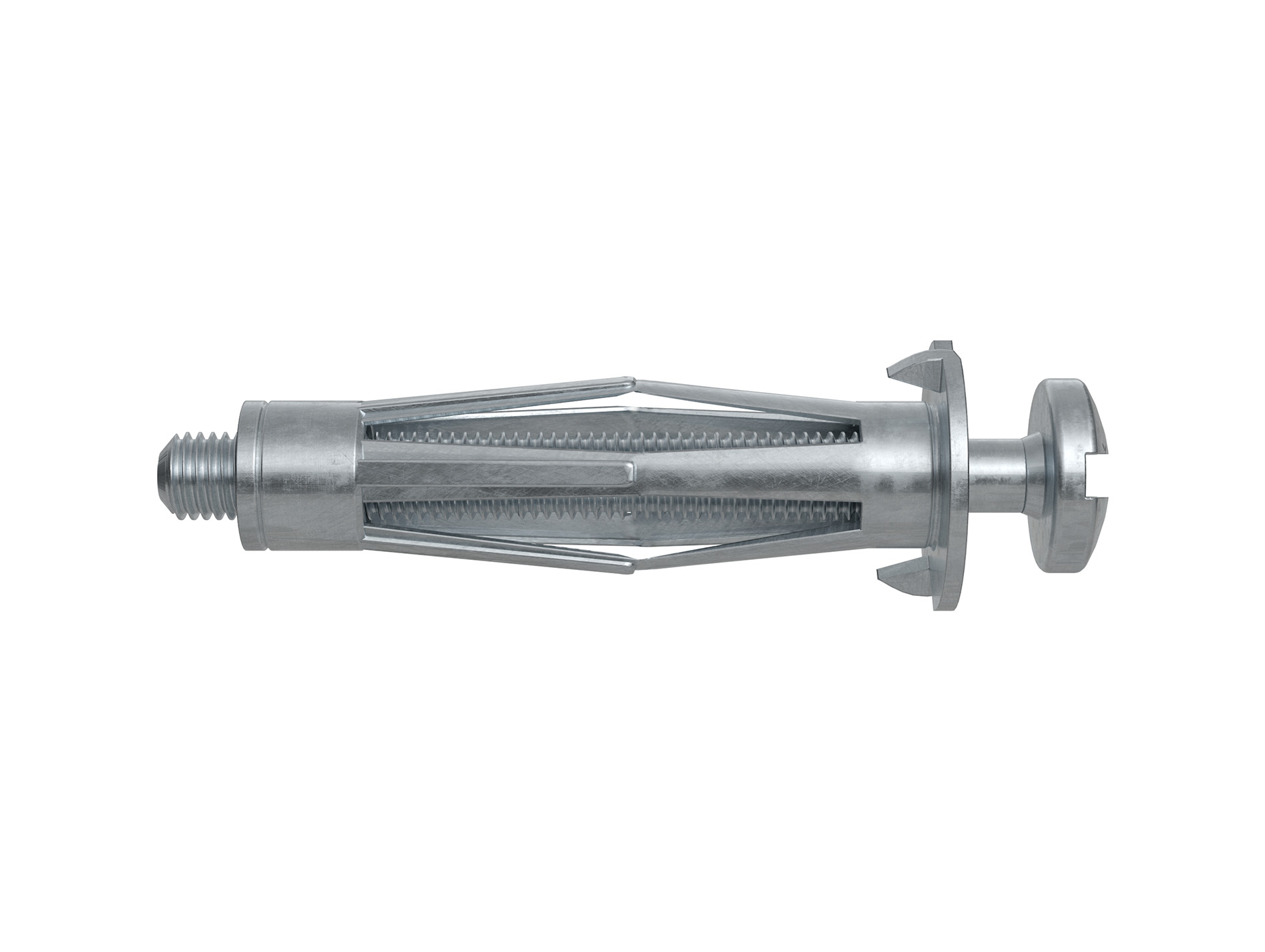 Le taraudage métrique permet de multiples dévissages et revissages de la pièce à fixer, ce qui offre une flexibilité optimale. Les branches d'expansion de la HM s'appuient sur une surface étendue ce qui permet une capacité de charge élevée. Les ergots s'encastrent dans le panneau, évitent la rotation de la cheville et assurent ainsi un montage sûr.
