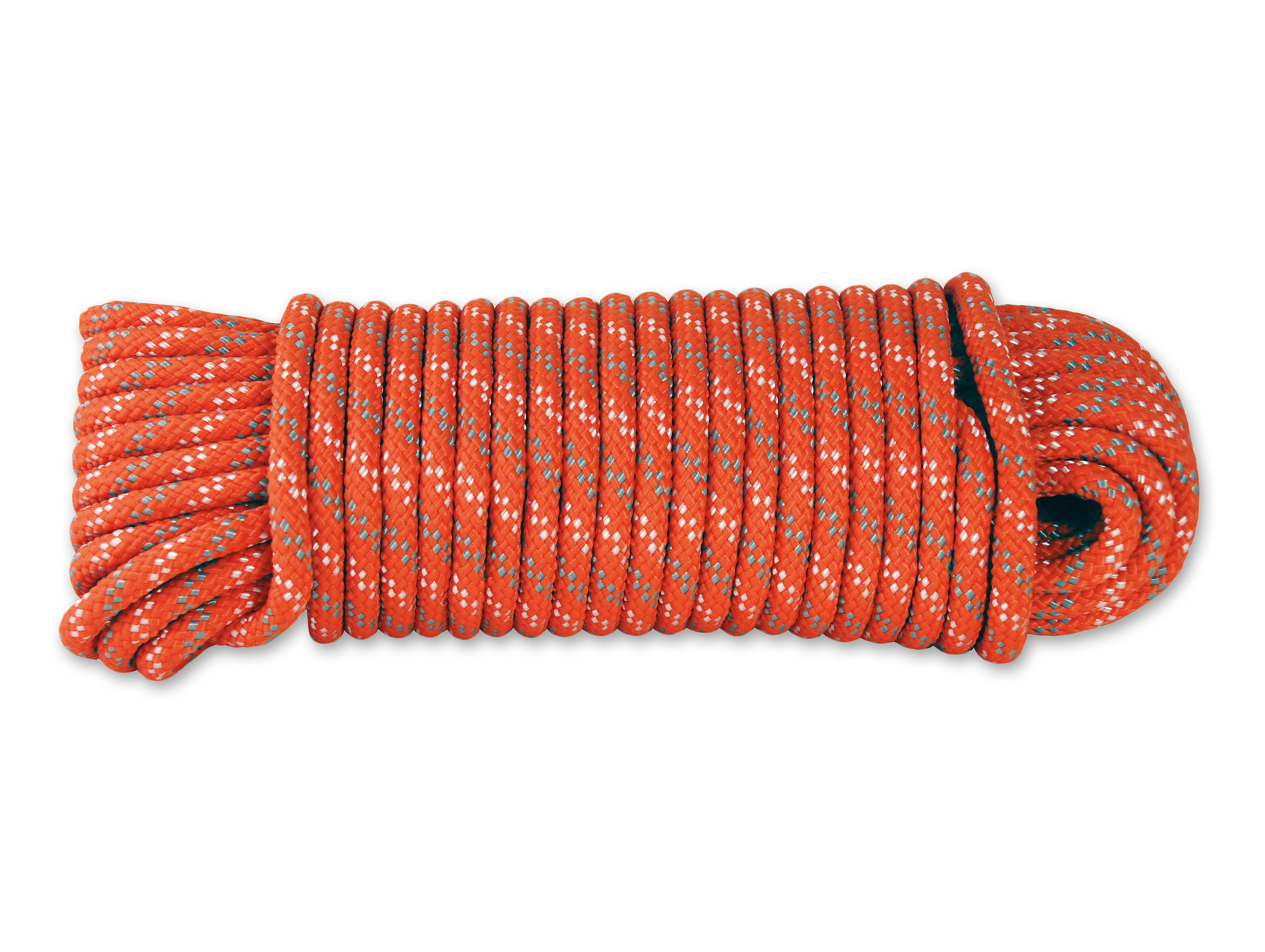 Corde tressée en polypropylène de 6 mm de diamètre. Adaptée pour une charge de travail indicative de 450 Kg. Longueur : 15 m. Couleur : Grise.