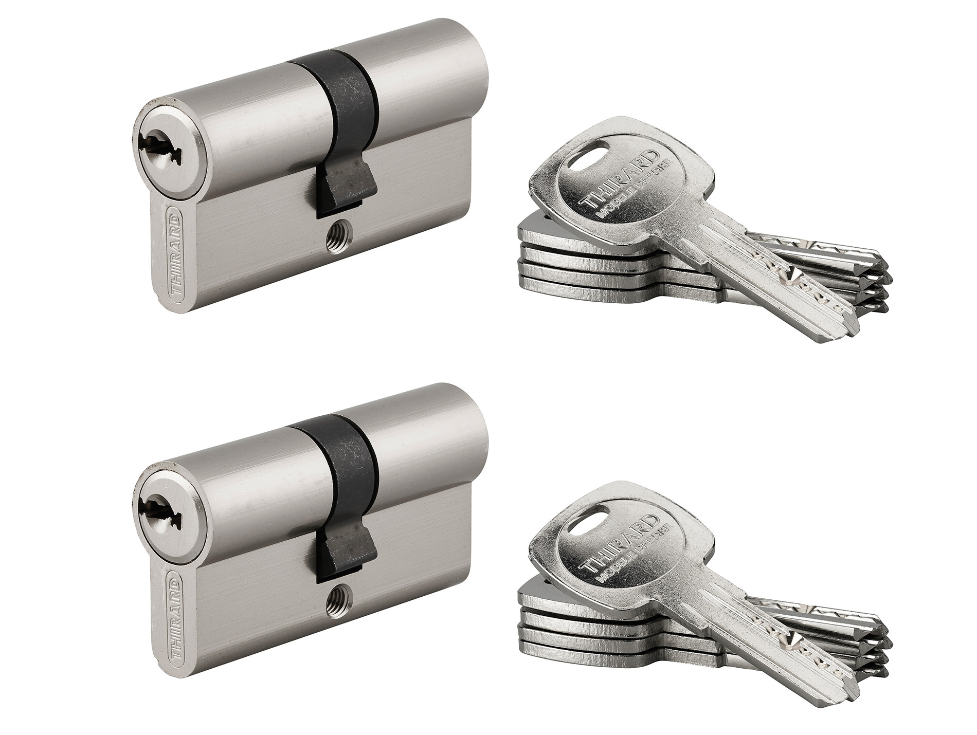 Lot de 2 cylindres barillets de serrure Trafic 6 goupilles 30x30. Profil européen laiton. Mécanisme à 6 goupilles contre le crochetage. Protection contre le perçage par aiguille et 1ère goupille en acier trempé. Panneton anti-arrachement fourni avec 5 clés réversibles fourni avec carte de propriété. Panneton débrayable : ouverture possible de l'extérieur même si une clé est restée à l'intérieur.