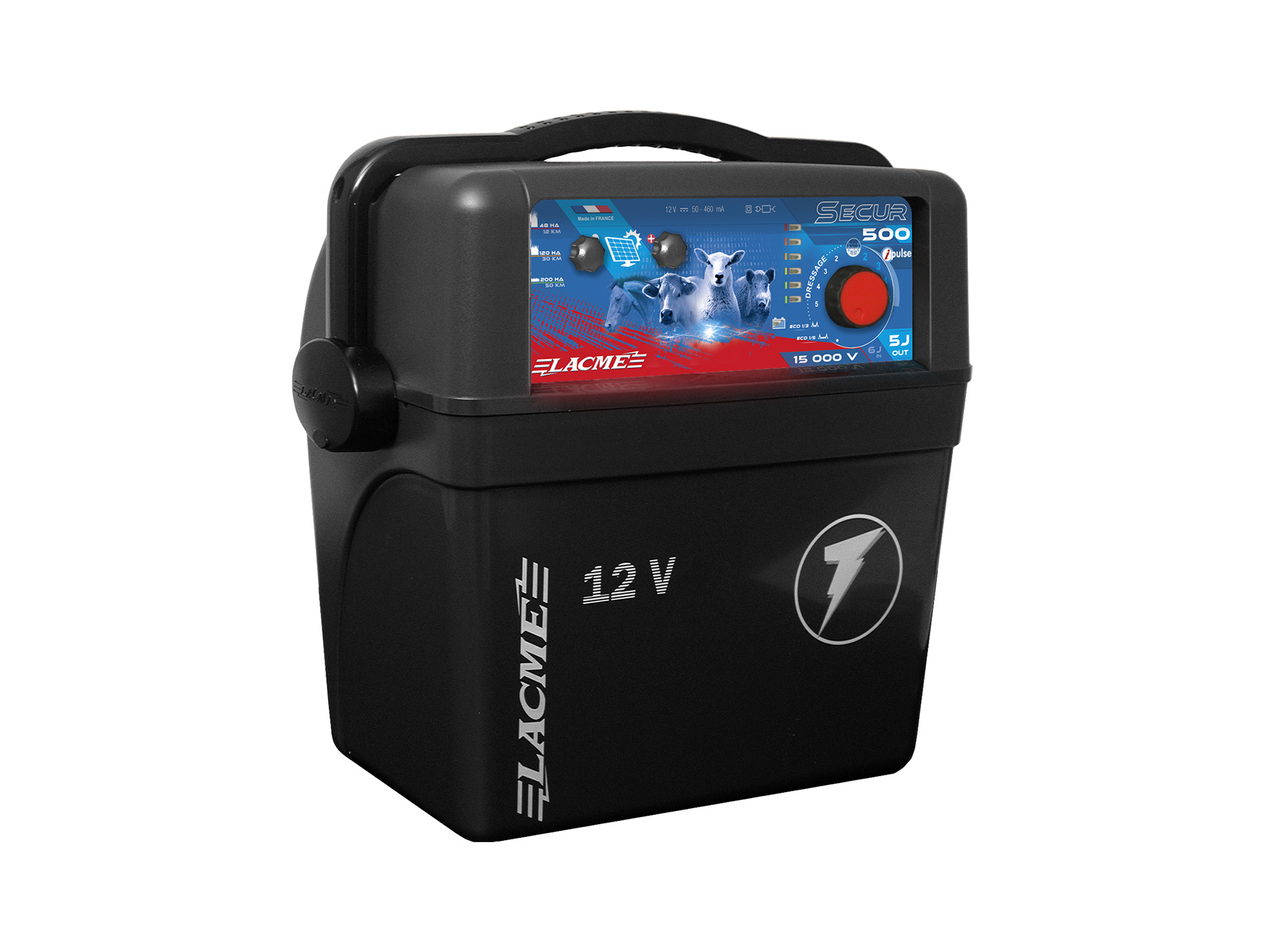 Electrificateur Secur 500 de LACME est spécialement conçu pour les parcelles éloignées et les animaux difficiles à garder. Avec une puissance de 5 joules et une tension de 15 000 volts, il offre une performance élevée pour maintenir la sécurité de la clôture et contenir les animaux.
