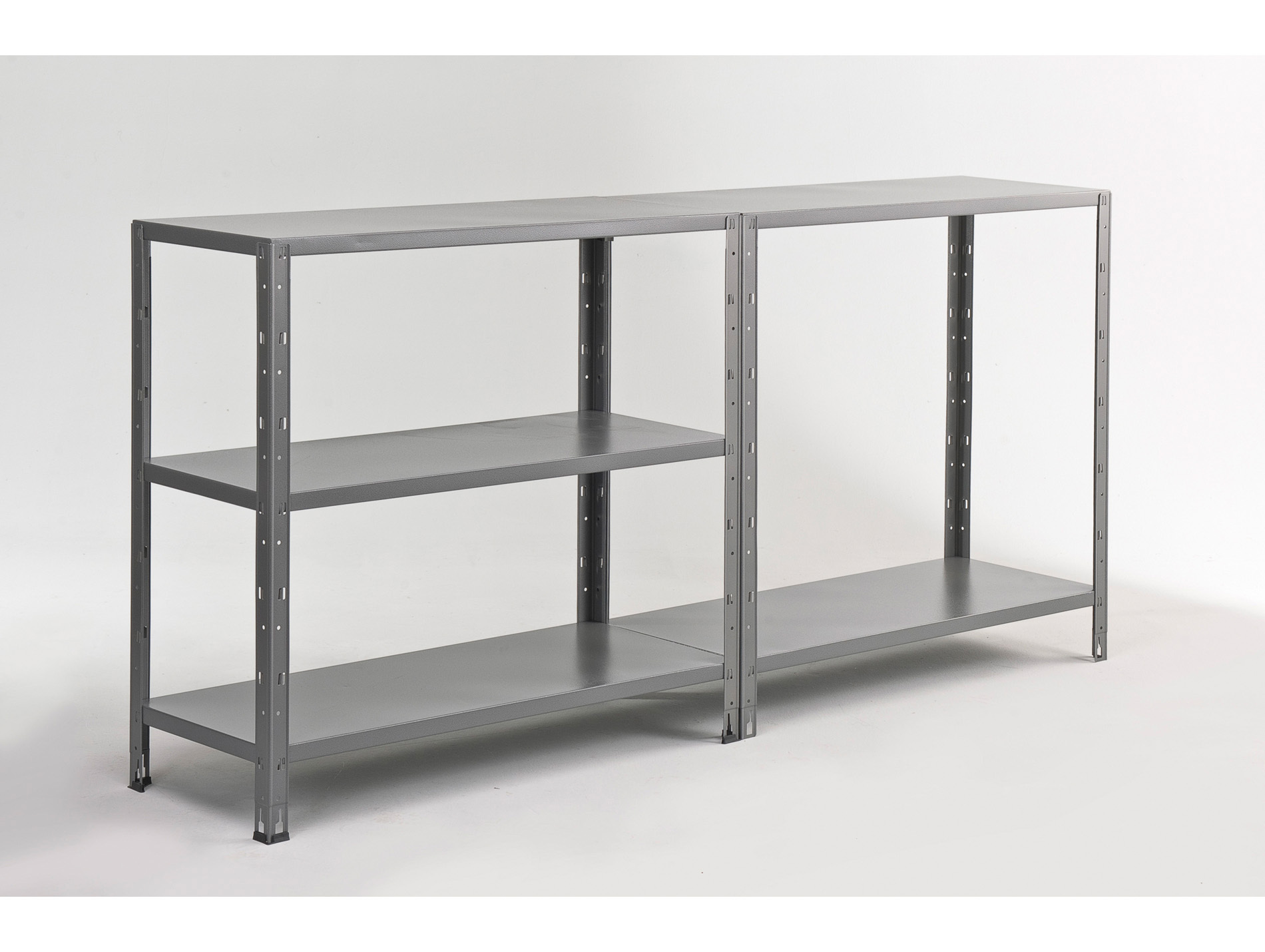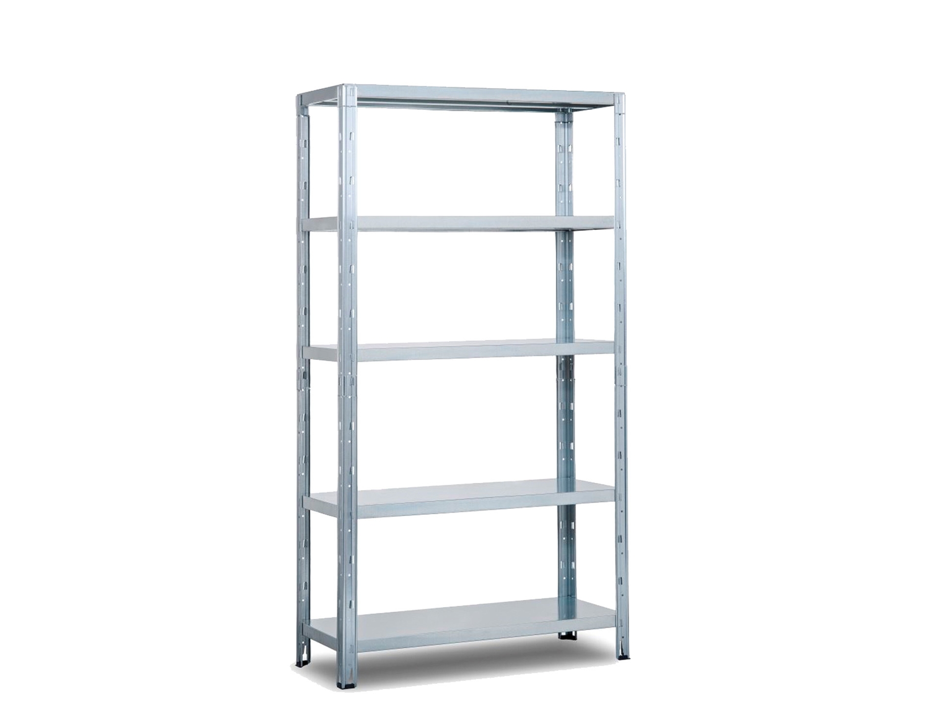 Etagère en métal avec 5 tablettes acier d'une capacité de 200kg chacune. Montage par clips sans vis ni boulon. Montants et étagères en acier galvanisé. Poids 16kg. Livrée à monter soi-même. Dimensions : 188 x 100 x 40 cm.