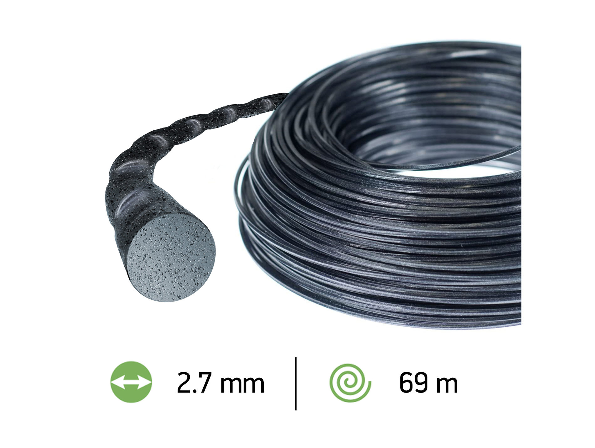 Ce fil de coupe convient aux travaux d'entretien avec des machines de petite cylindrée et des modèles sur batterie de moins de 36V. Sa structure avec particules d'aluminium incorporées améliore la résistance du fil et limite la casse au niveau de l'œillet. Il aide à obtenir une coupe rapide tout en réduisant le niveau sonore pendant l'utilisation. Sa conception permet aussi de solliciter moins la machine, pour un usage plus confortable au quotidien.