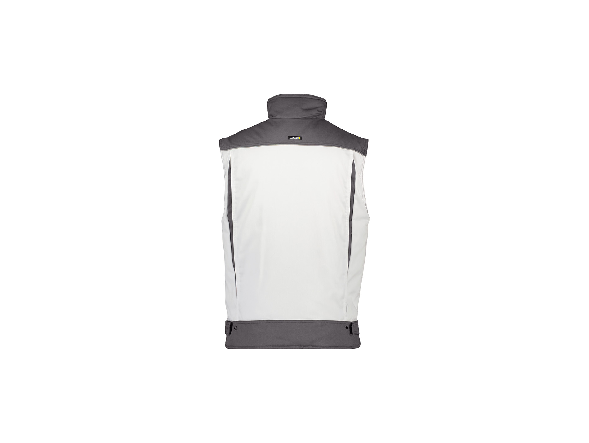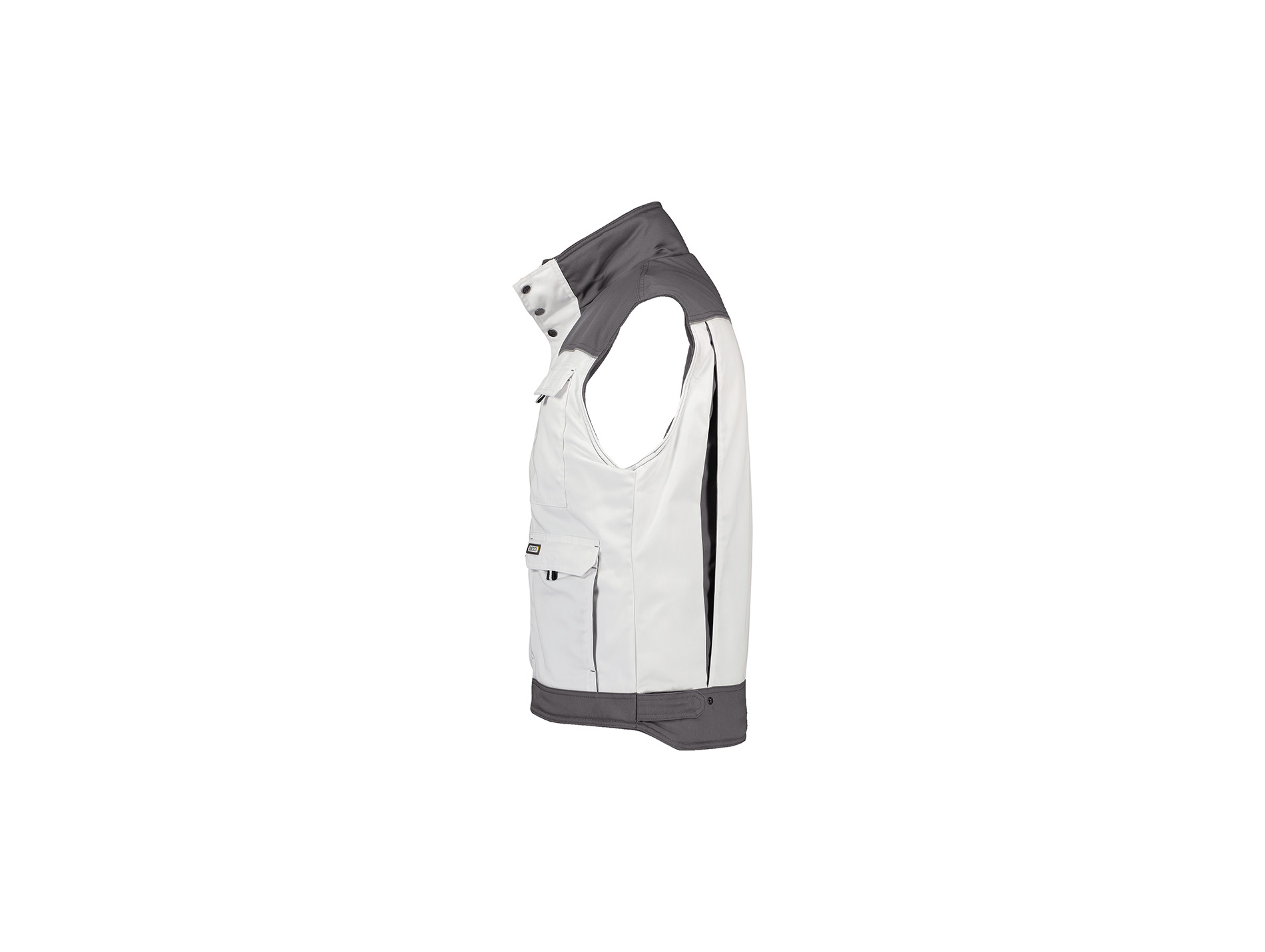 Gilet de travail Hulst DASSY® avec doublure polaire. Taille réglable avec boutons pressions, fermeture à glissière double sens avec rabat boutons pressions, fermeture à glissière pour impression, plis d'aisance dos et dos rallongé. 2 poche plaquées, chauffe-mains, 2 poches poitrine, poche napoléon avec fermeture à glissière, poche téléphone, porte-crayon, poche intérieure. Composition : 65% polyester/35% coton, +/- 245 g/m² doublure polaire. Coloris : blanc/gris.