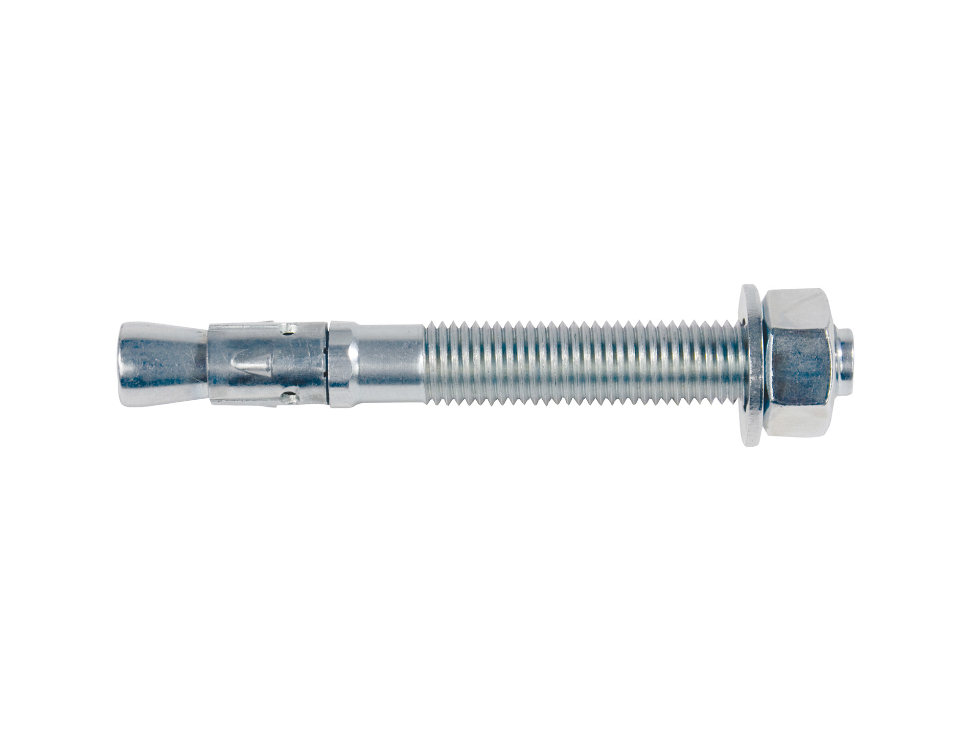 Goujon d'ancrage pour montage traversant et en attente. Lorsque vous serrez l'écrou hexagonal, le goujon fileté est ramené dans la bague d´expansion et s´expanse contre les parois du support.