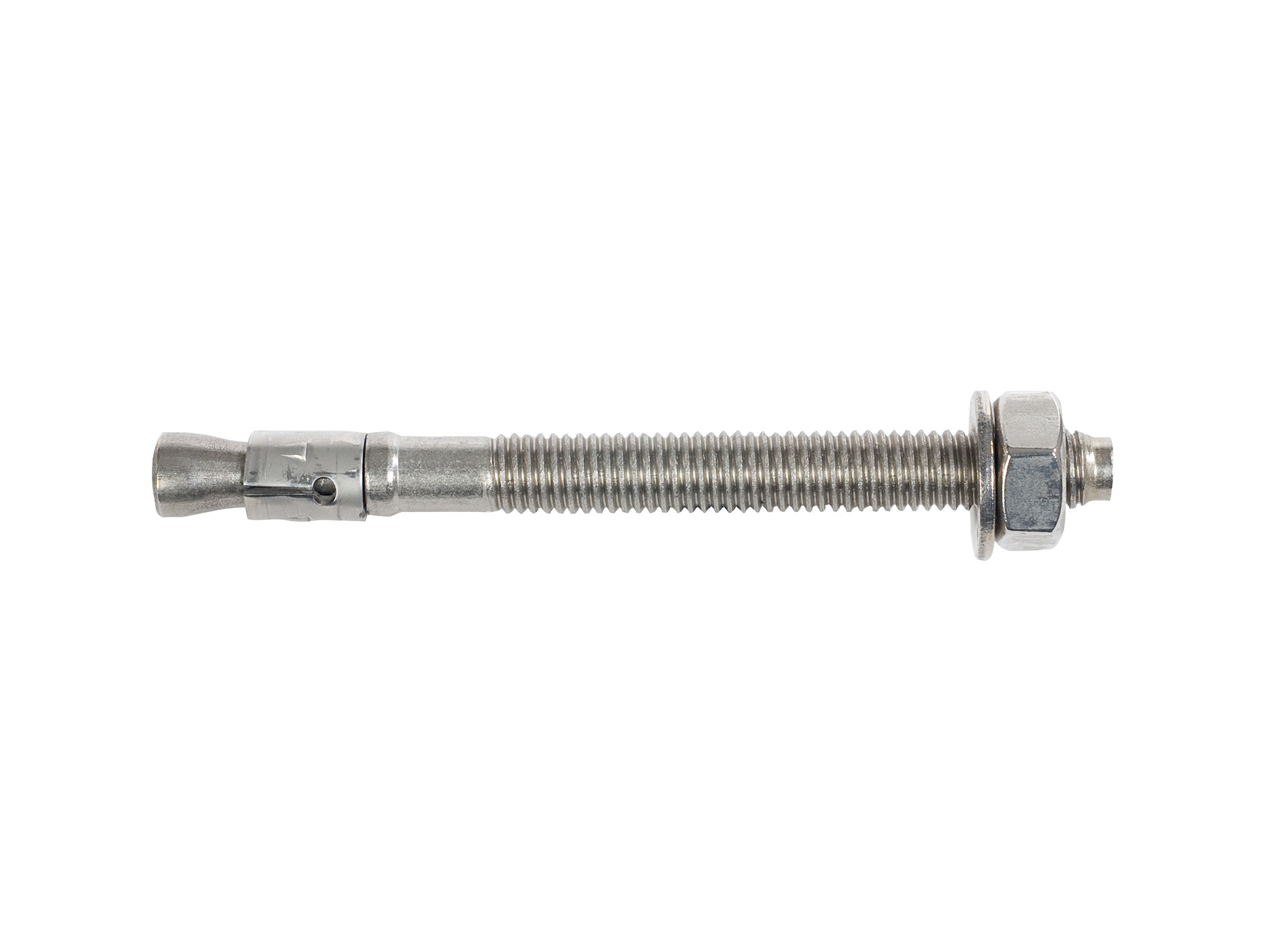 Goujon d'ancrage pour montage traversant et en attente. Lorsque vous serrez l'écrou hexagonal, le goujon fileté est ramené dans la bague d´expansion et s´expanse contre les parois du support. Version en acier inoxydable pour utilisation en extérieur et dans des zones humides.