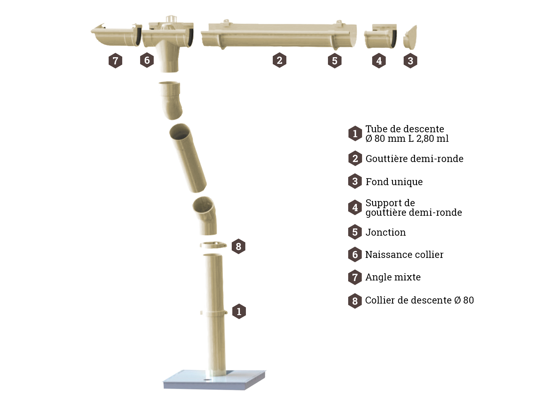 Gouttière demi-ronde en PVC développé 25, longueur : 2 m. Coloris : Sable.