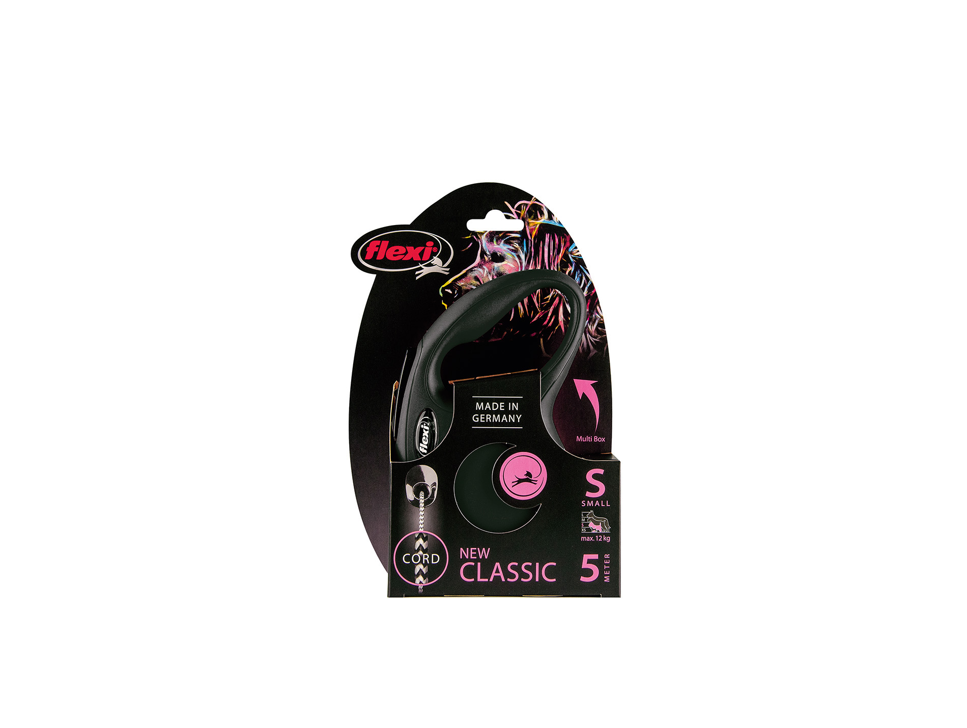 La laisse Classic Flexi N°1 en noir de 5 mètres est dotée d'un enrouleur innovant et d'un nouveau système de freinage pour une meilleure sécurité. Conçue avec une forme ergonomique, elle offre un confort optimal lors des promenades. Cette laisse est idéale pour donner à votre chien plus de liberté de mouvement tout en gardant un contrôle efficace.