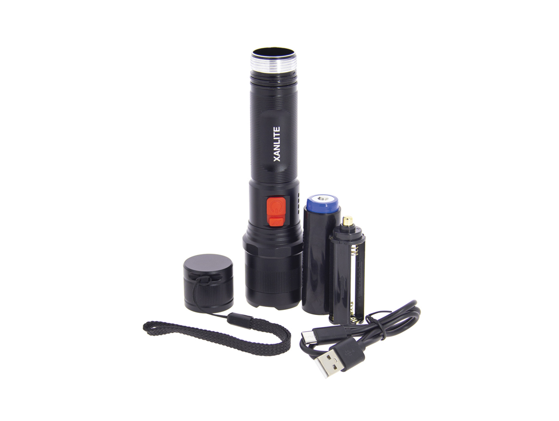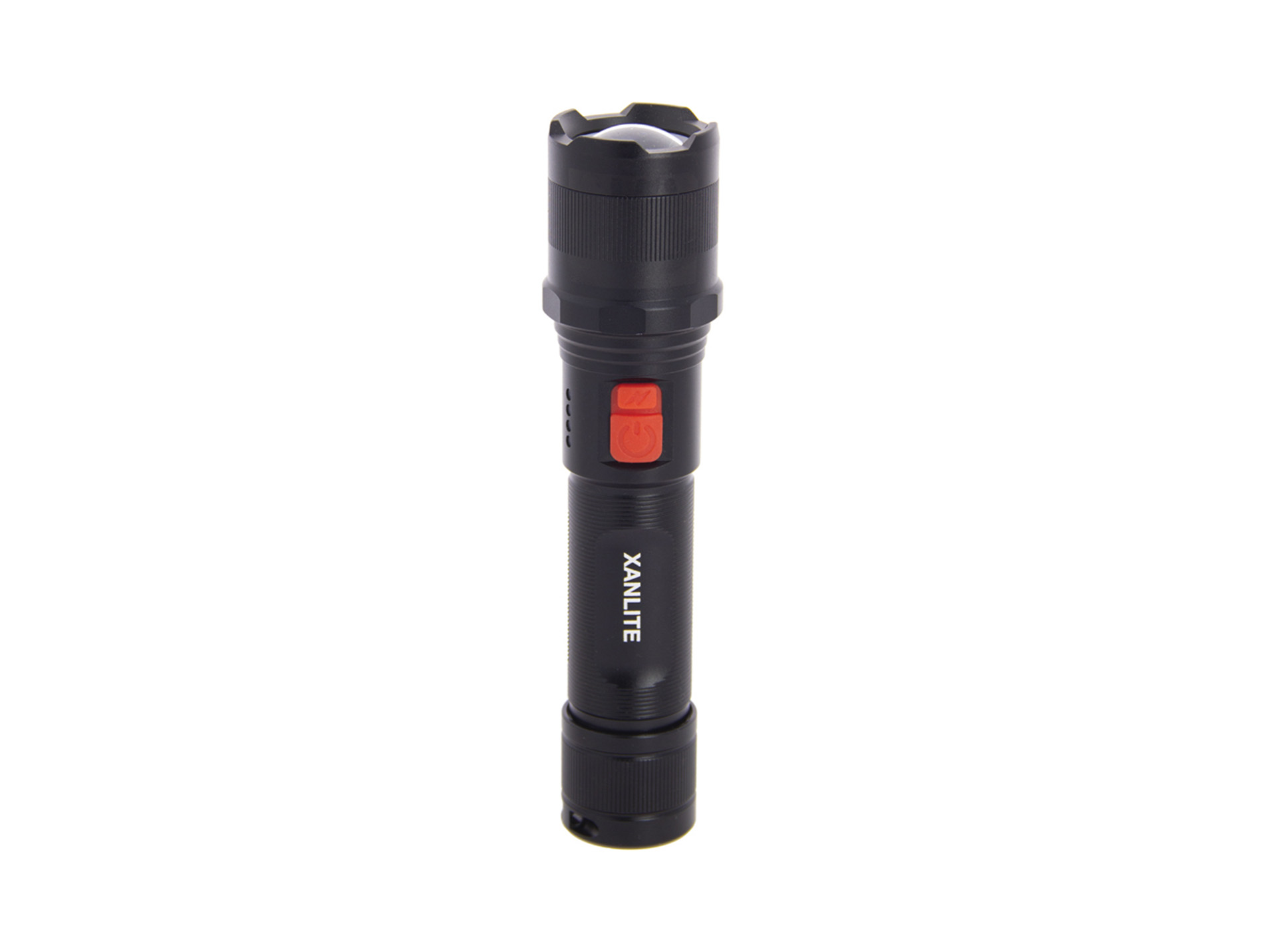 La lampe torche Led XANLITE rechargeable de 1000lm offre un éclairage puissant dans une forme cylindrique compacte avec un diamètre de 3,9cm. Son indice de protection IP44 la rend résistante aux éclaboussures et à la poussière, tandis que son indice de résistance aux chocs IK08 assure une robustesse optimale. Idéale pour les conditions exigeantes, elle combine performance et durabilité.