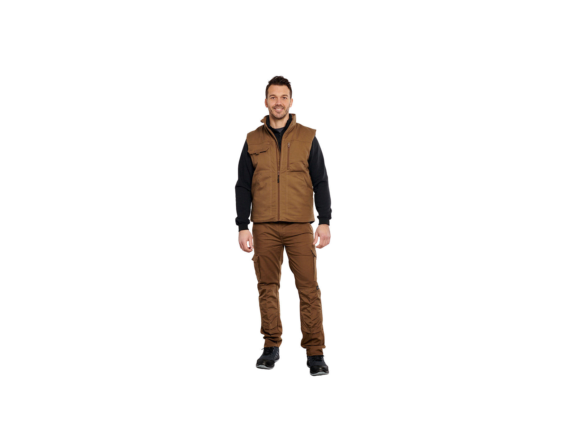 Pantalon de travail Typhon+ en élasthanne. La braguette et la poche de sécurité avec zip sont en nylon.