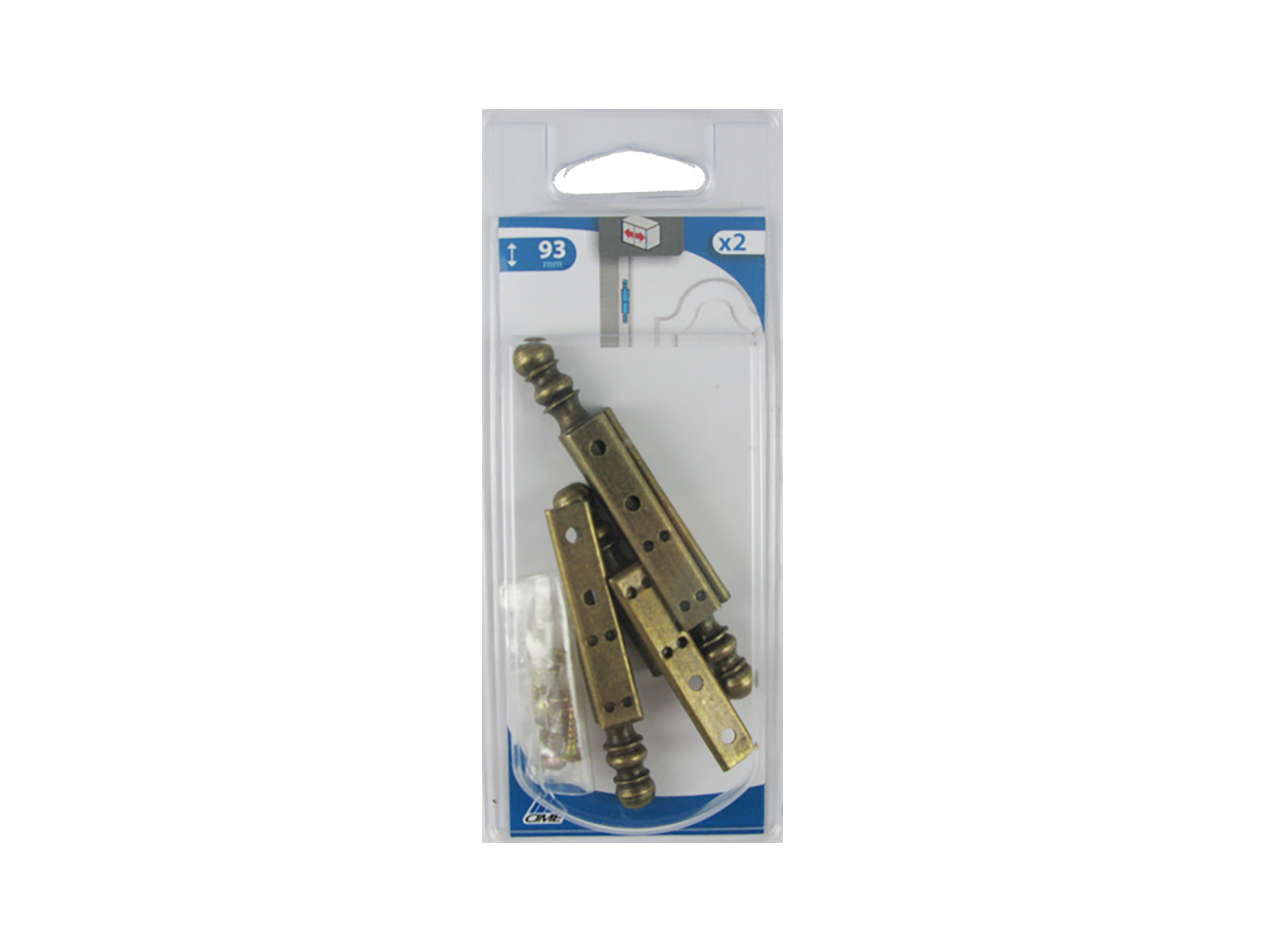 Paumelle rustique à vases universelle CIME, gauche ou droite. Hauteur de la platine : 50 mm. Hauteur totale : 90 mm. Diamètre : 10 mm. Acier vieux laiton. Par 2.