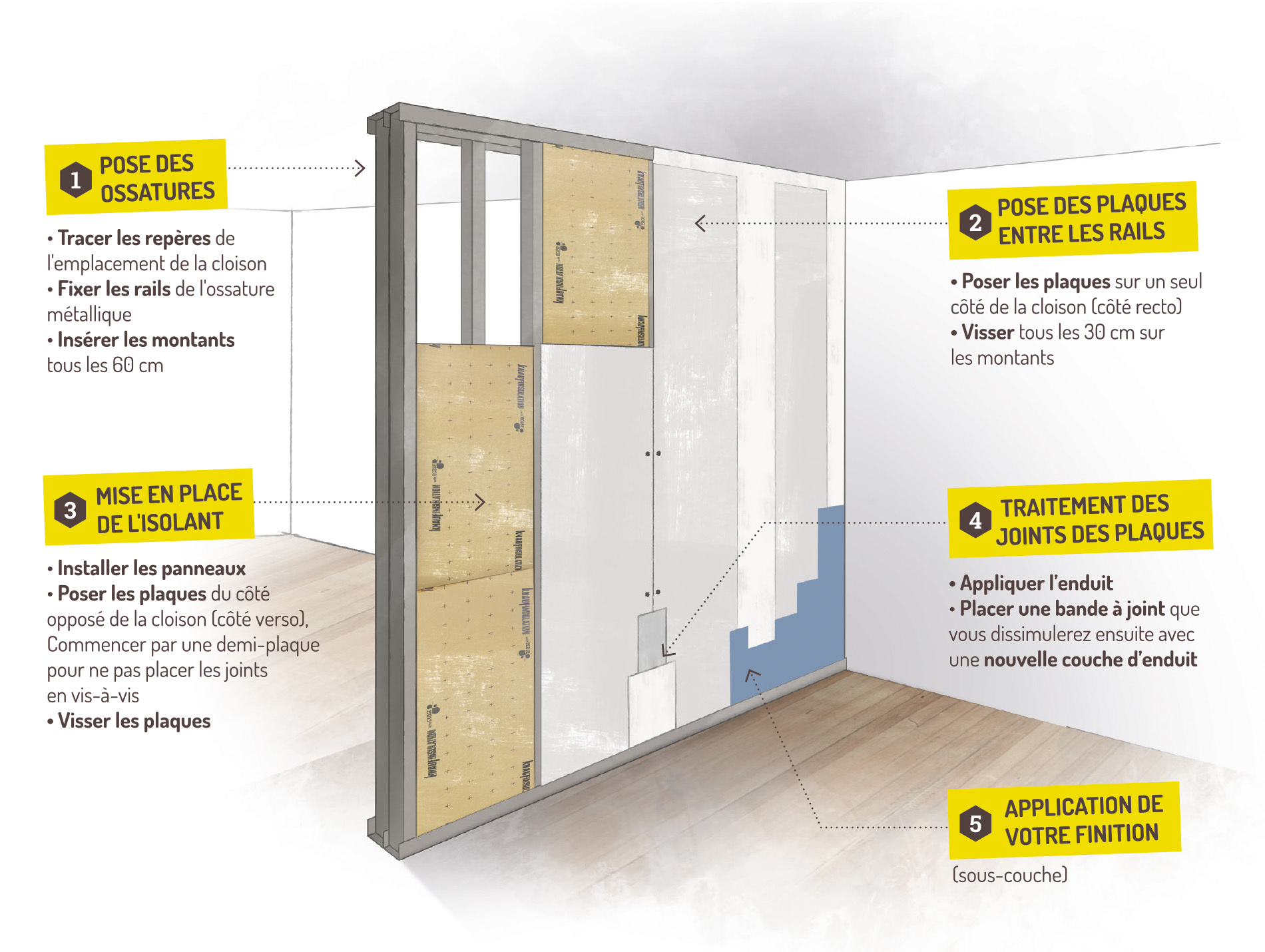 - On vient ensuite visser la plaque de plâtre aux montants .