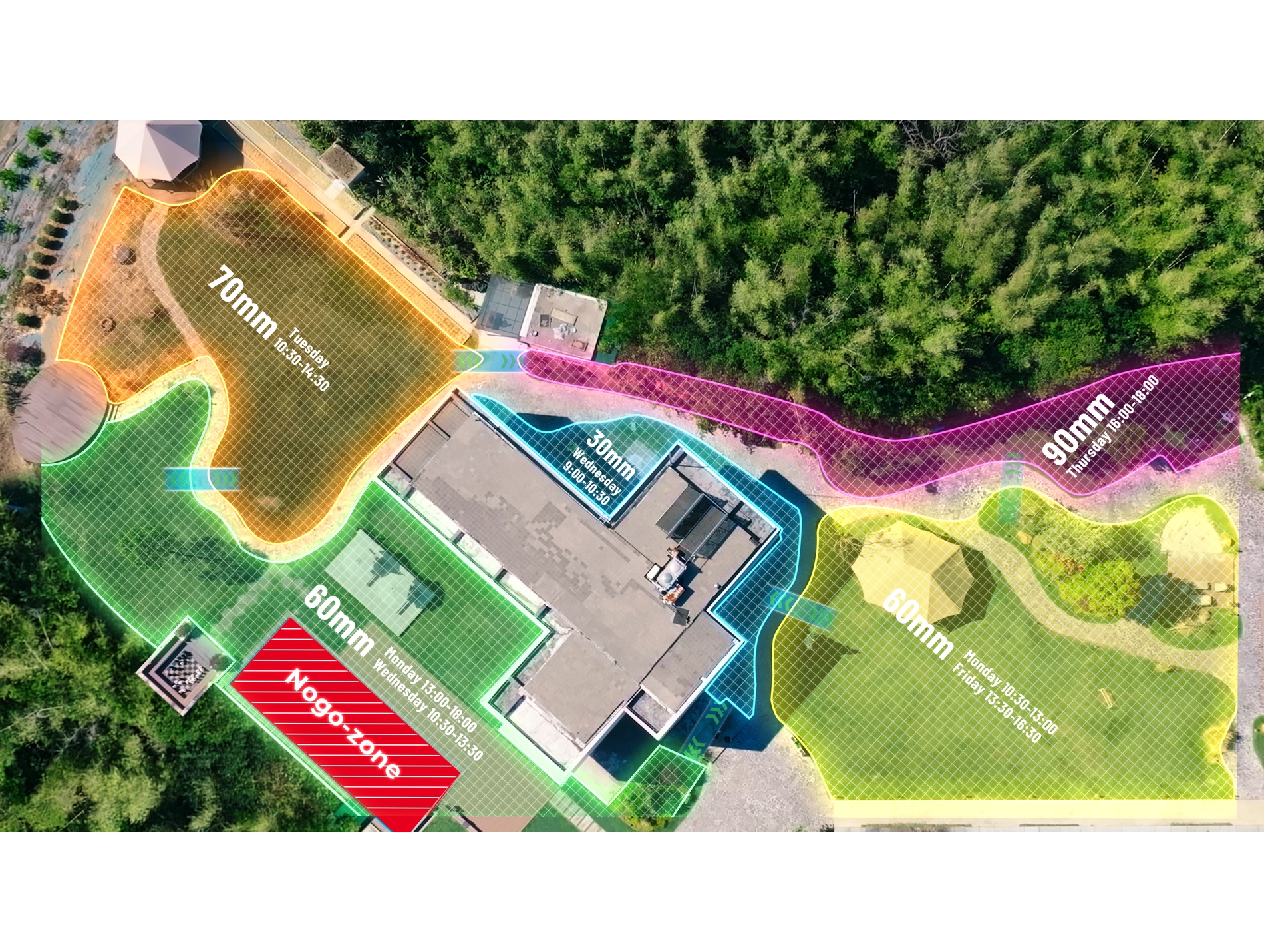La tonte se pilote facilement grâce à la gestion de 6 zones, paramétrable depuis l'application mobile. La hauteur de coupe réglable de 30 à 80 mm s'adapte aux saisons et aux besoins du gazon. Avec une largeur de tonte de 180 mm et une capacité de 100 m² par heure, il convient parfaitement aux jardins résidentiels. Son fonctionnement reste très discret, avec un niveau sonore inférieur à 54 dB(A), et il peut évoluer sur des pentes jusqu'à 45 %.