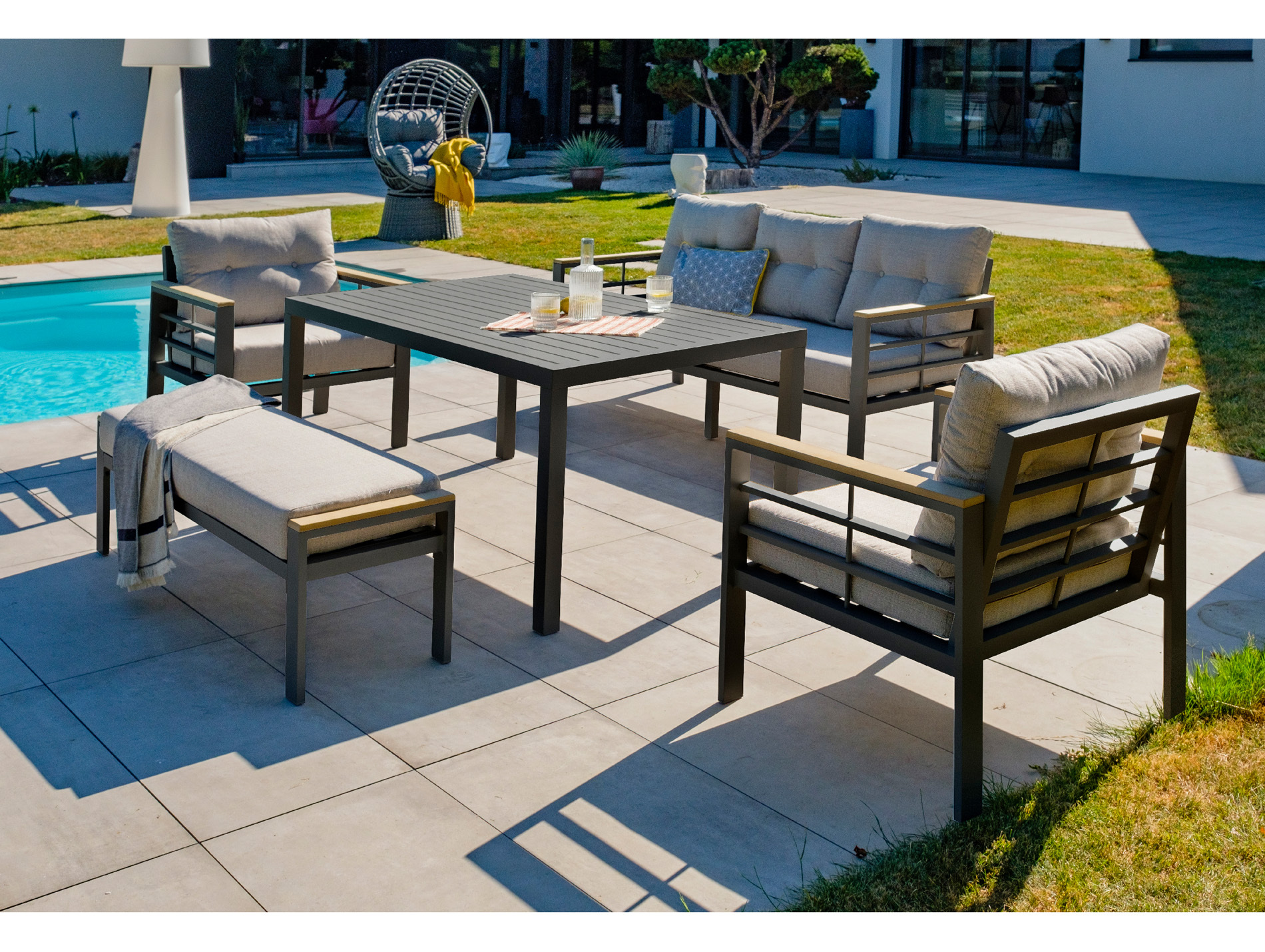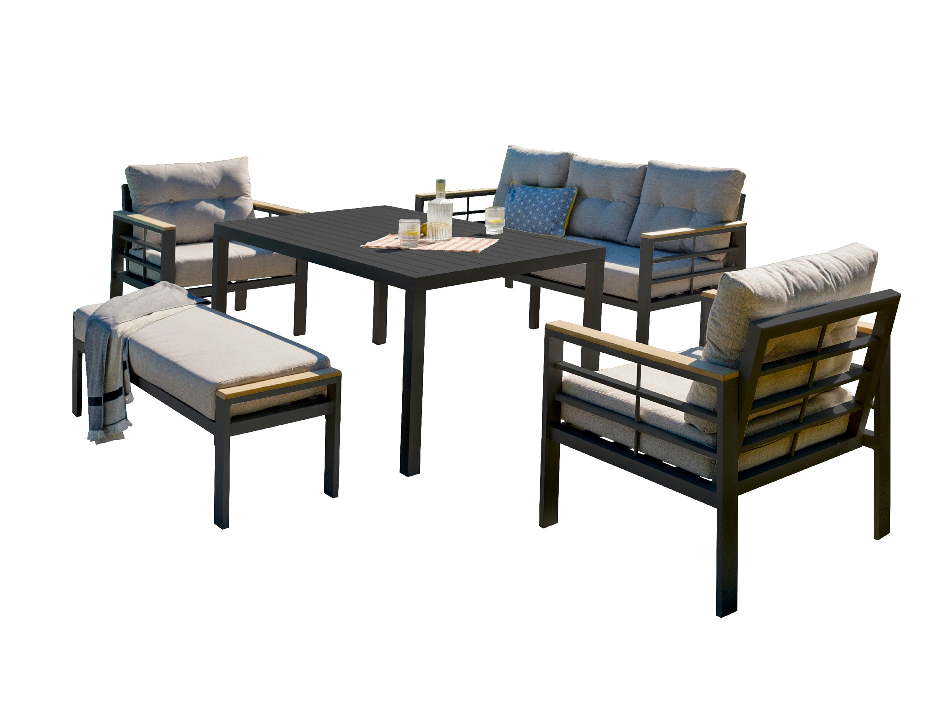 Salon de jardin bas aluminium DCB GARDEN Cayenne 8 places noir