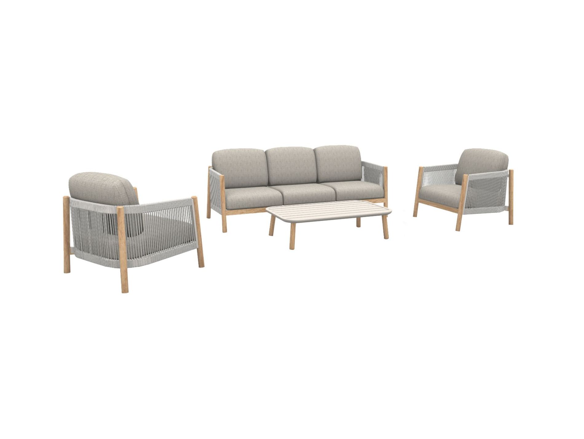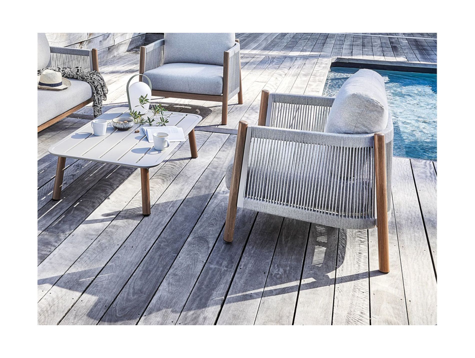 Avec ses hauts accoudoirs, ses volumes enveloppants et sa grande largeur d'assise, cet ensemble crée une atmosphère conviviale et soignée sur la terrasse ou au jardin.