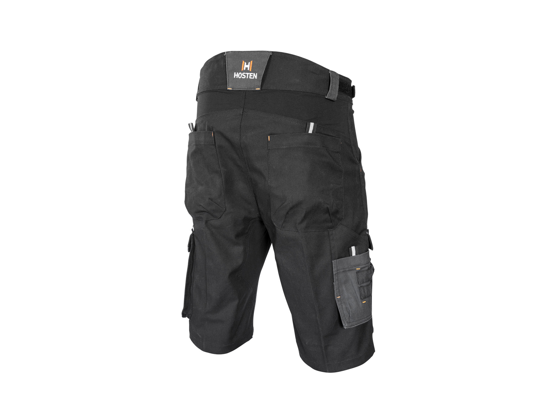 Bermuda HOSTEN de la gamme Brut. Ceinture à larges passants et taille ajustable par pattes de serrage. Réhausse lombaire et empiècement stretch pour plus de confort et d'aisance. Poche téléphone, poche mètre, 2 poches dos et poches outils renforcées en Cordura. Détails réfléchissants pour une visibilité accrue. Tous les rabats de poches sont doublés en oxford 900 D et fermés par bandes auto-agrippantes permettant de sécuriser leur contenu. Coloris : gris / noir.