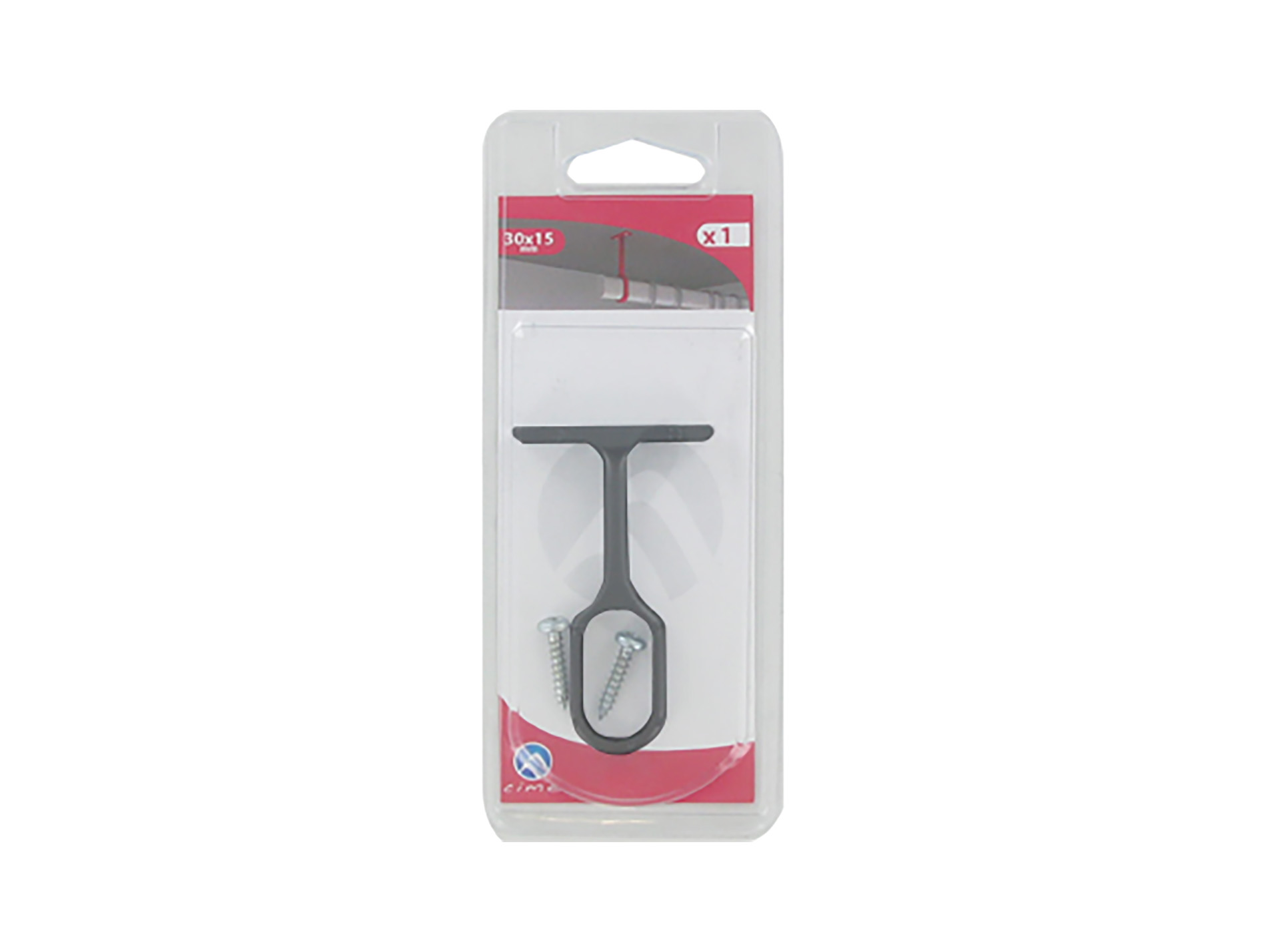 Support du milieu réglable pour penderie CIME. Largeur : 43 mm. Hauteur : 83 - 116 mm. Profondeur : 20 mm. Pour tube ovale : 30 x 15 mm. Acier chromé.