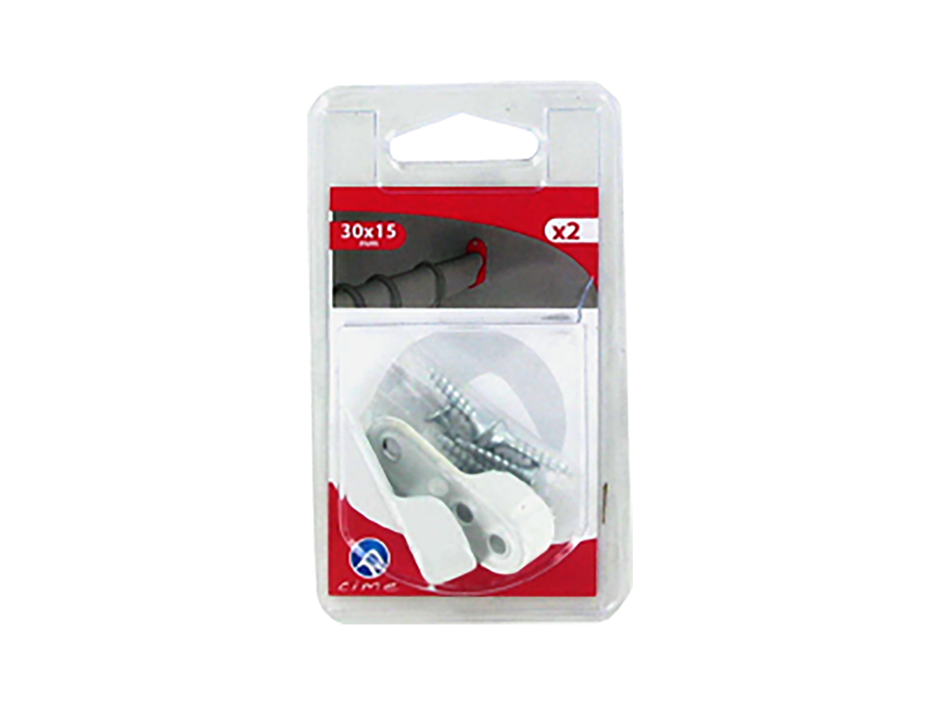 Support d'extrémité CIME, pour tube de penderie ovale 30 x 15 mm. Largeur : 15 mm. Hauteur : 46 mm. Longueur : 17 mm. Acier époxy blanc. Par 2.