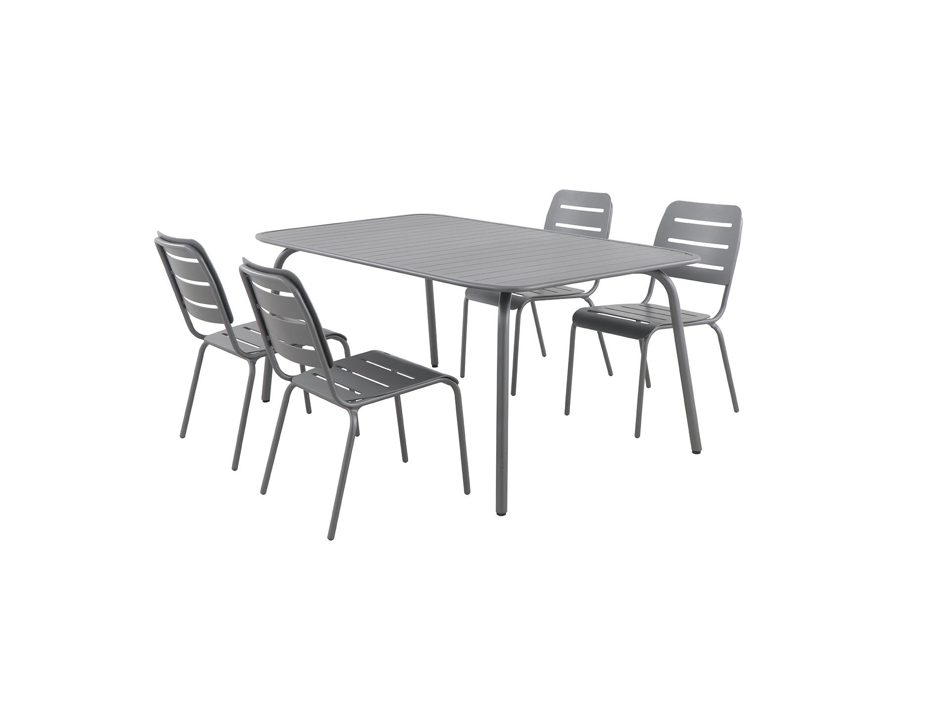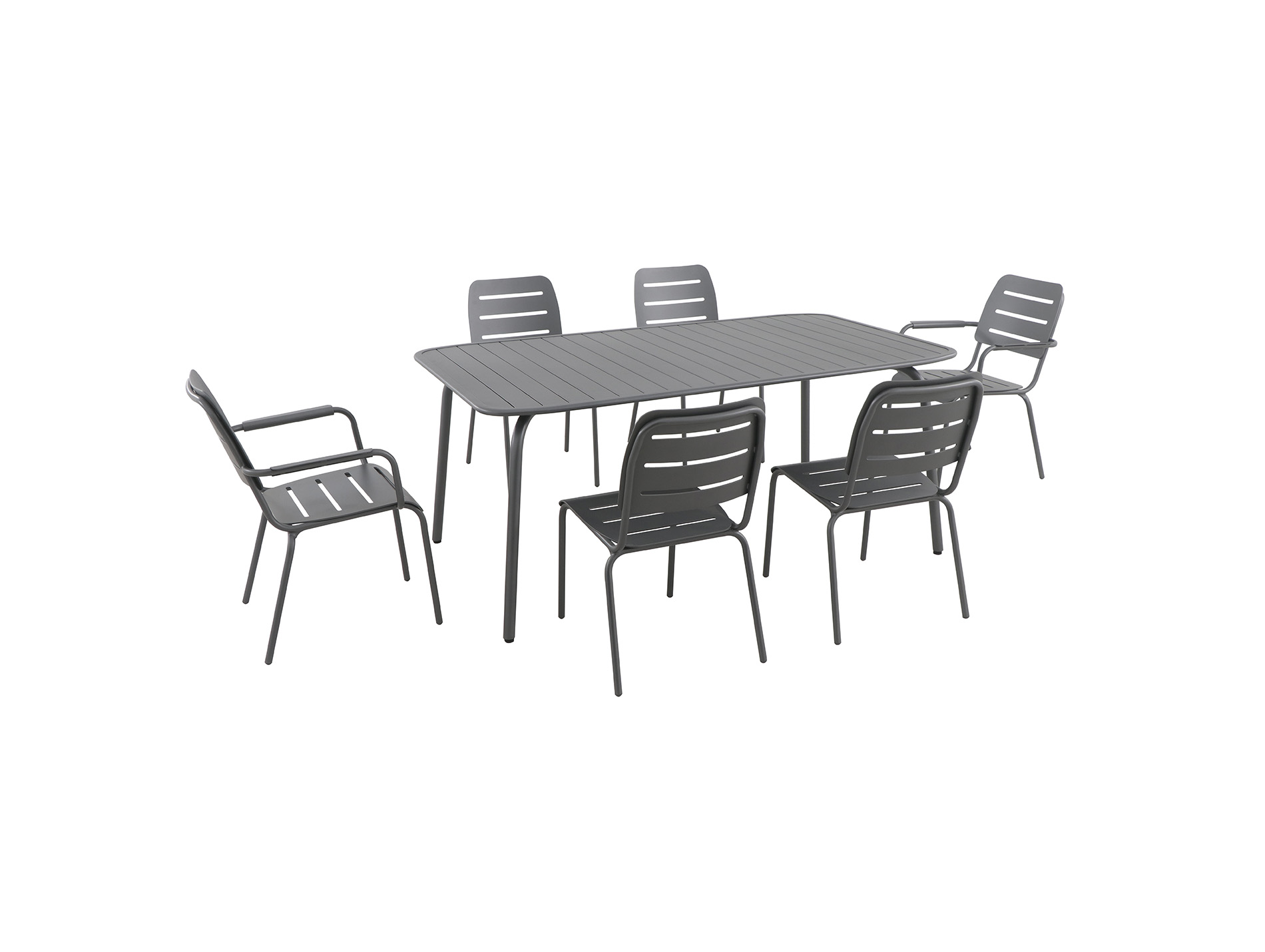 La table KLEO marie ingéniosité et robustesse grâce à sa structure et à son plateau composés de lattes en aluminium, un matériau léger et parfaitement résistant à la corrosion. Avec ses dimensions généreuses (180 × 100 × 75 cm), elle accueille jusqu’à 8 convives en toute convivialité. Ses coins arrondis garantissent une sécurité optimale, notamment pour les enfants.
