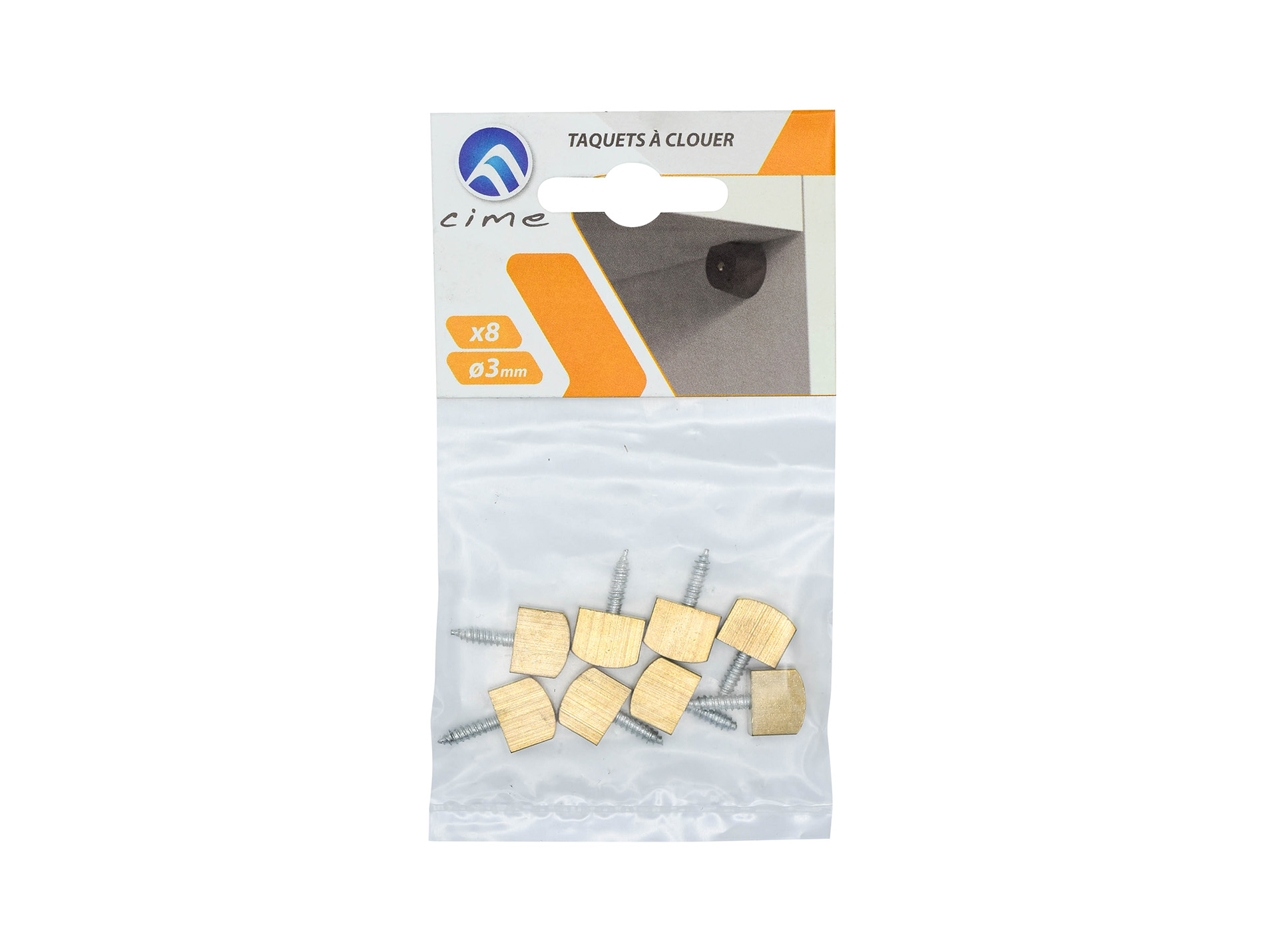 Taquet d'étagère CIME à visser. Perçage de 3 mm. Filetage bois. Diamètre 3 mm. Laiton poli. Par 8.