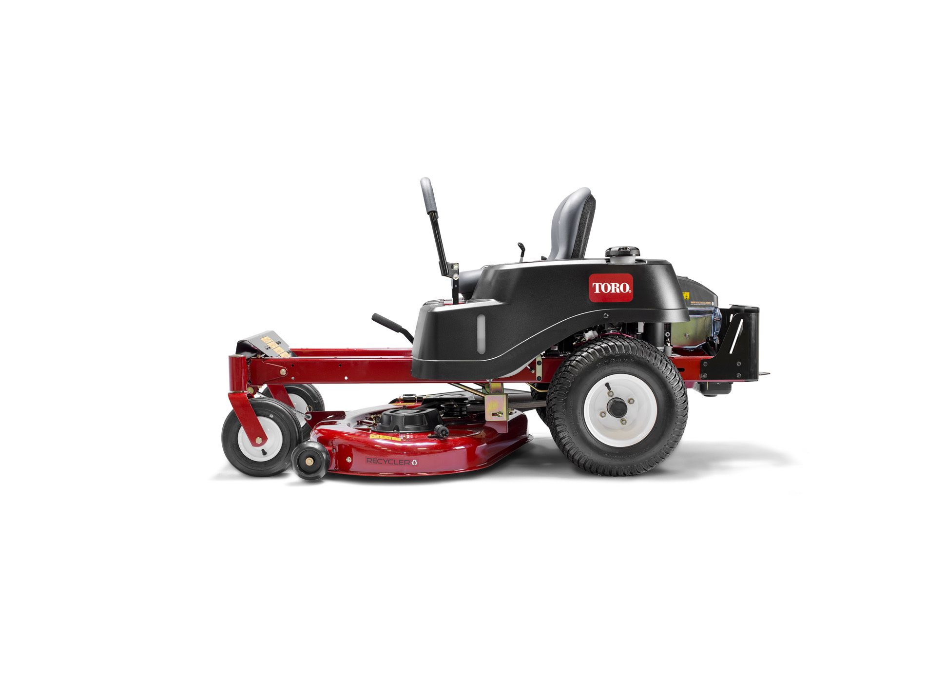 Moteur Toro OHV Monocylindre 452cm3 - Transmission hydrostatique à 2 moteurs - Commande à manettes = Rayon de braquage 0° - 3 Gammes de vitesse - Embrayage électromagnétique des lames - Unité de coupe flottante - Plateau de coupe 107cm "recycler" à 2 lames + éjection latérale - Capacité réservoir à carburant 11,3 Litres - Poids : 254kg