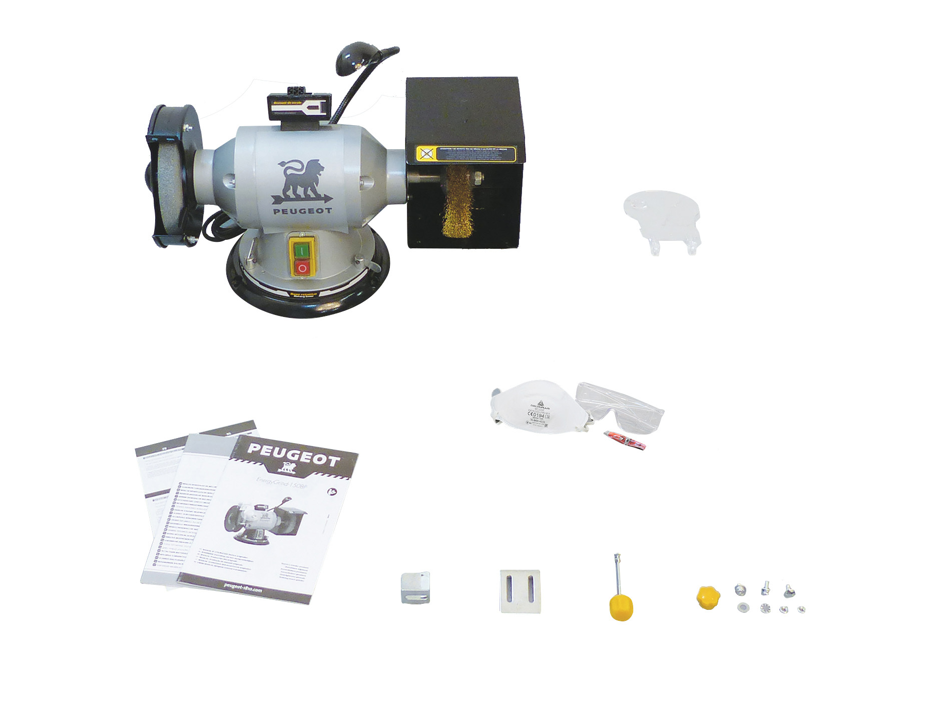 Le dressoir incorporé permet de rectifier les meules après affûtage et son écran pare-étincelle en polycarbonate réglable, avec loupe, sécurise l'utilisation