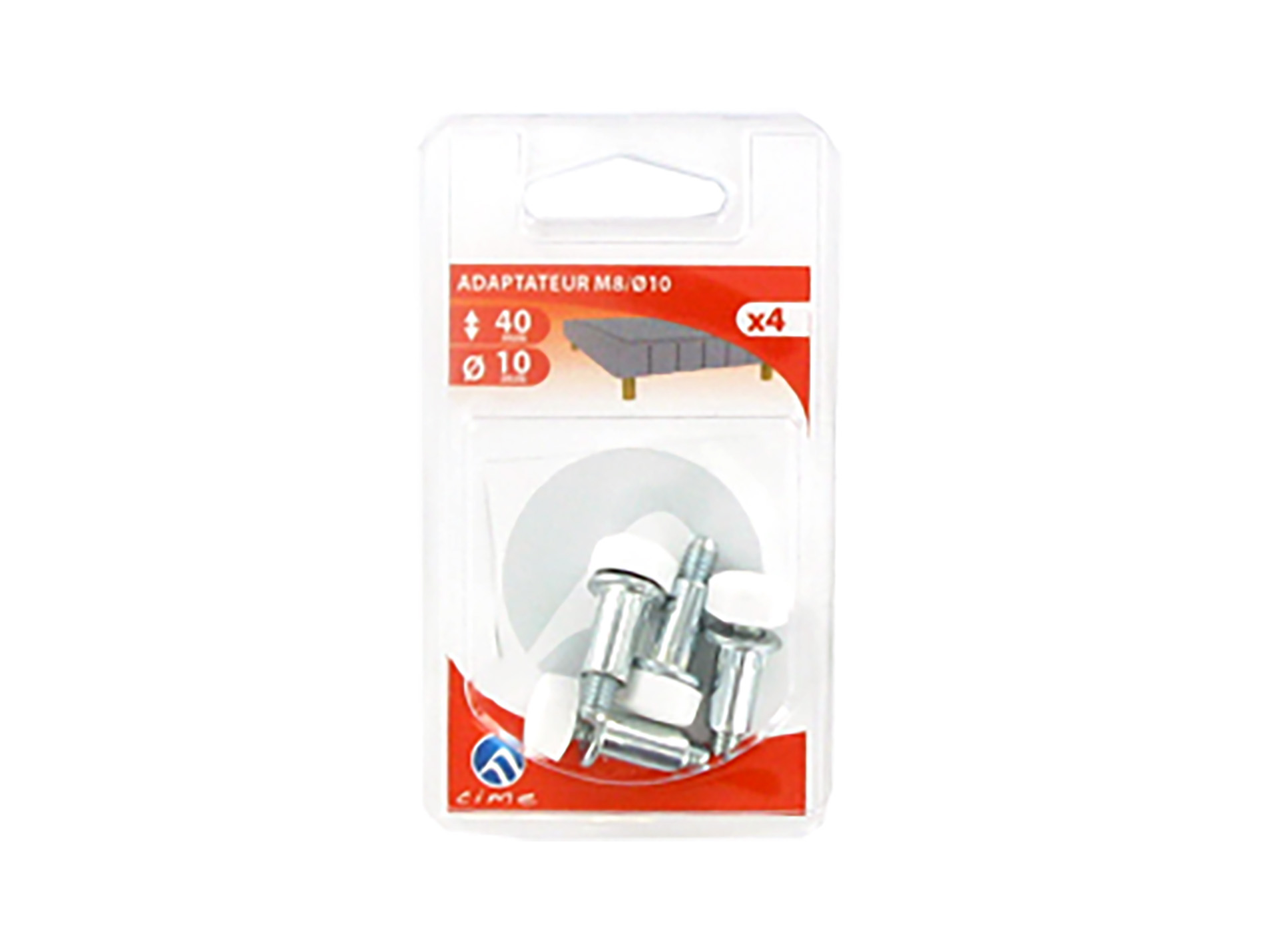 Vérin encastrable CIME, avec insert à frapper. Arrêt de collerette de diamètre 15 mm. Course de réglage de 9 à 25 mm. Hauteur : 30 mm. Diamètre : M6. Alliage métal, plastique blanc. Par 4.