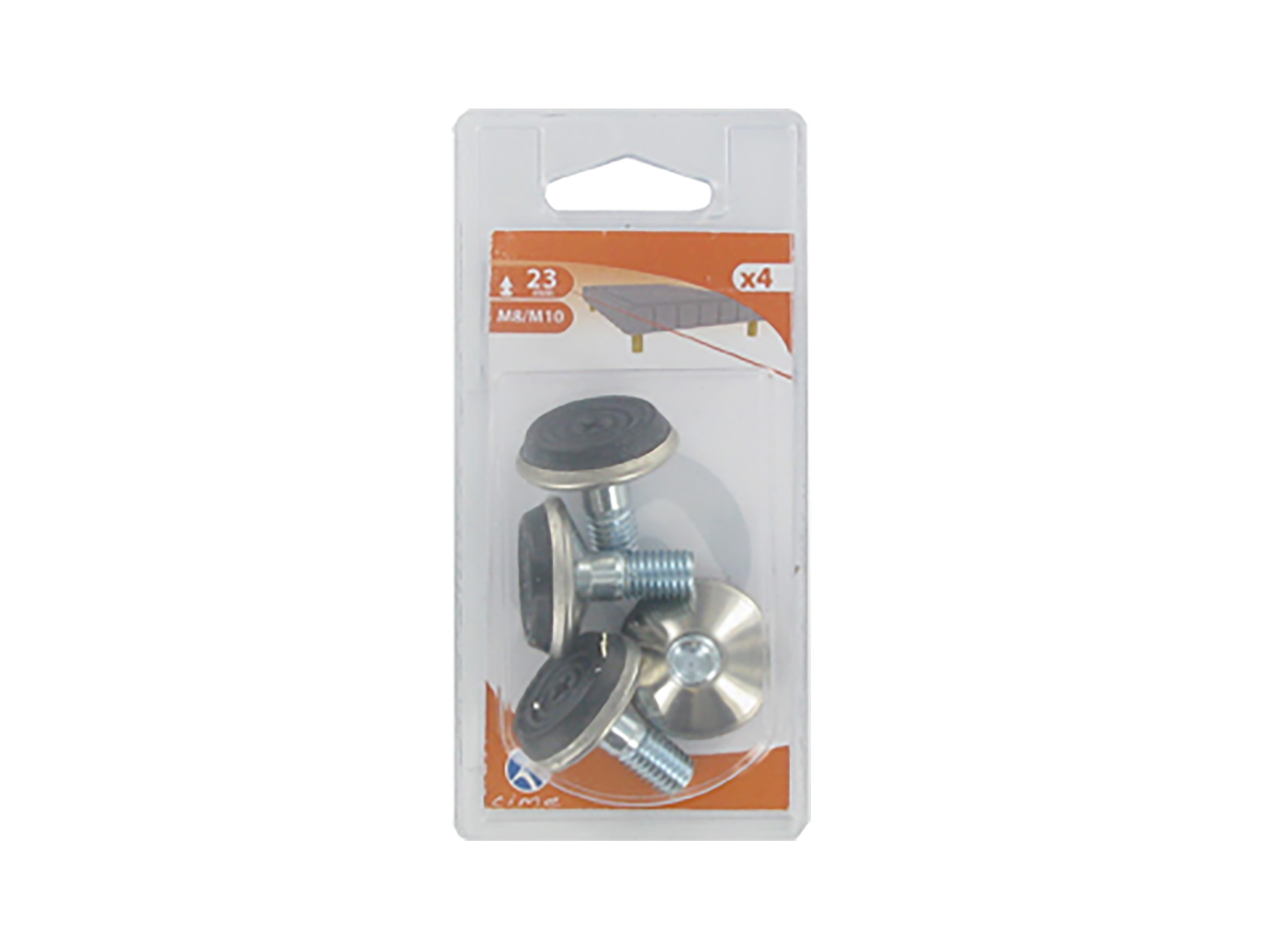 Vérin CIME. Embase de diamètre 30. Hauteur : 32 mm. Diamètre M10. Acier chromé. Par 4.
