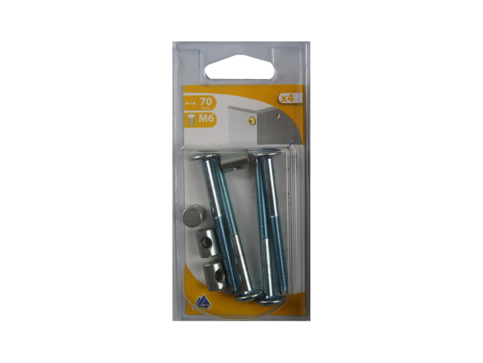 Vis à tête bombée + plot d'assemblage taraudé. En acier zingué.Ø : diamètre en mm.L. : longueur en mm.