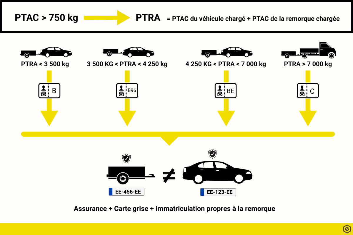 Au-delà d'un poids total de 750 kg, plusieurs cas de figure s'offrent à vous.